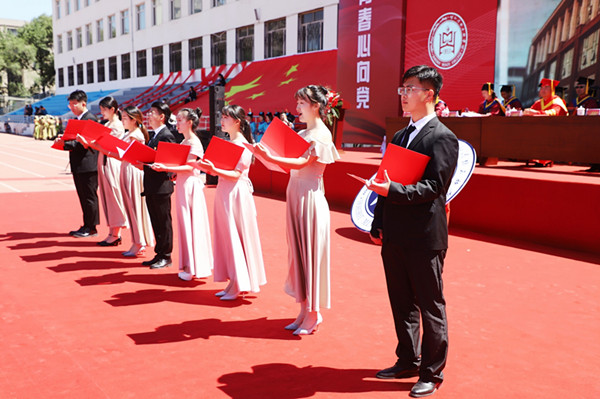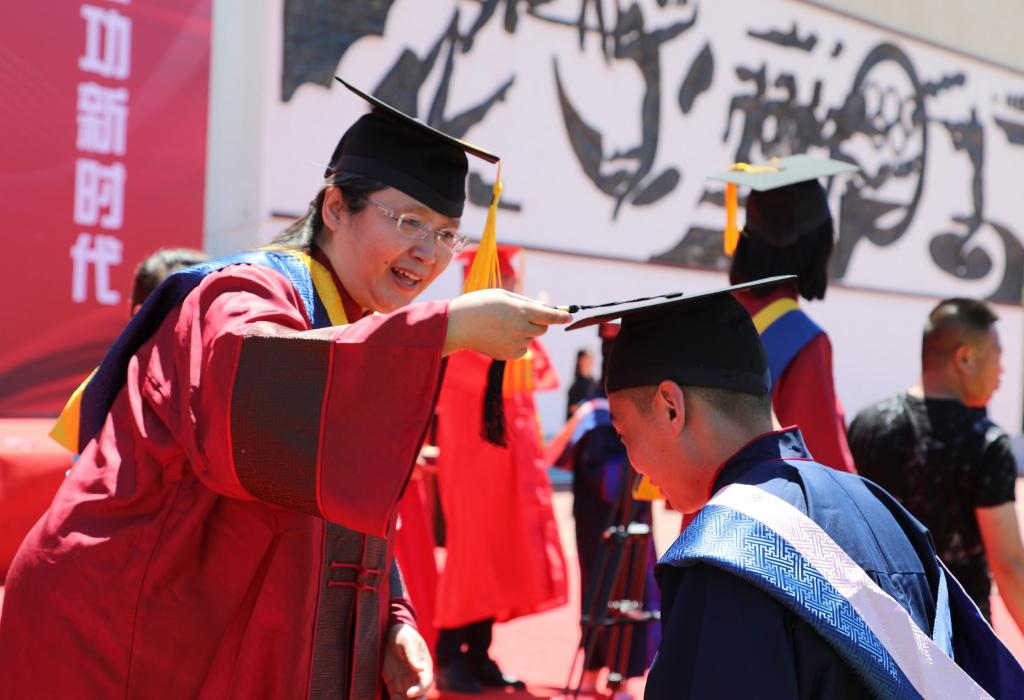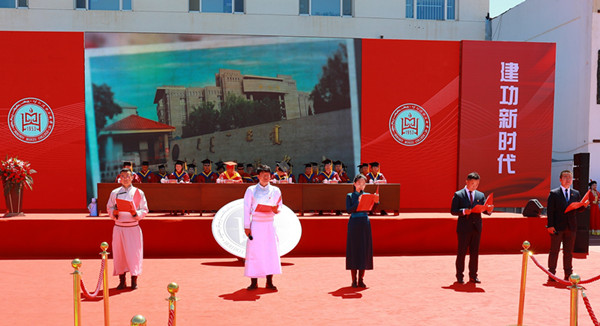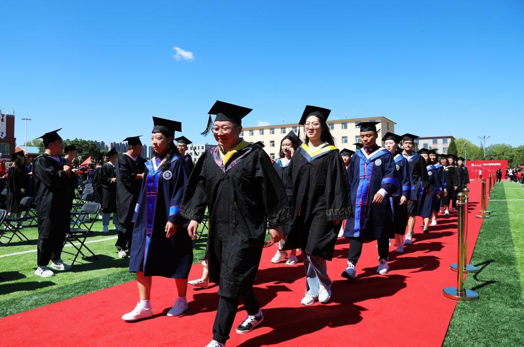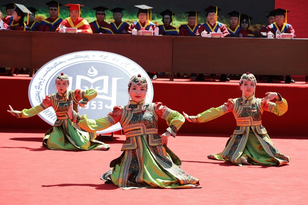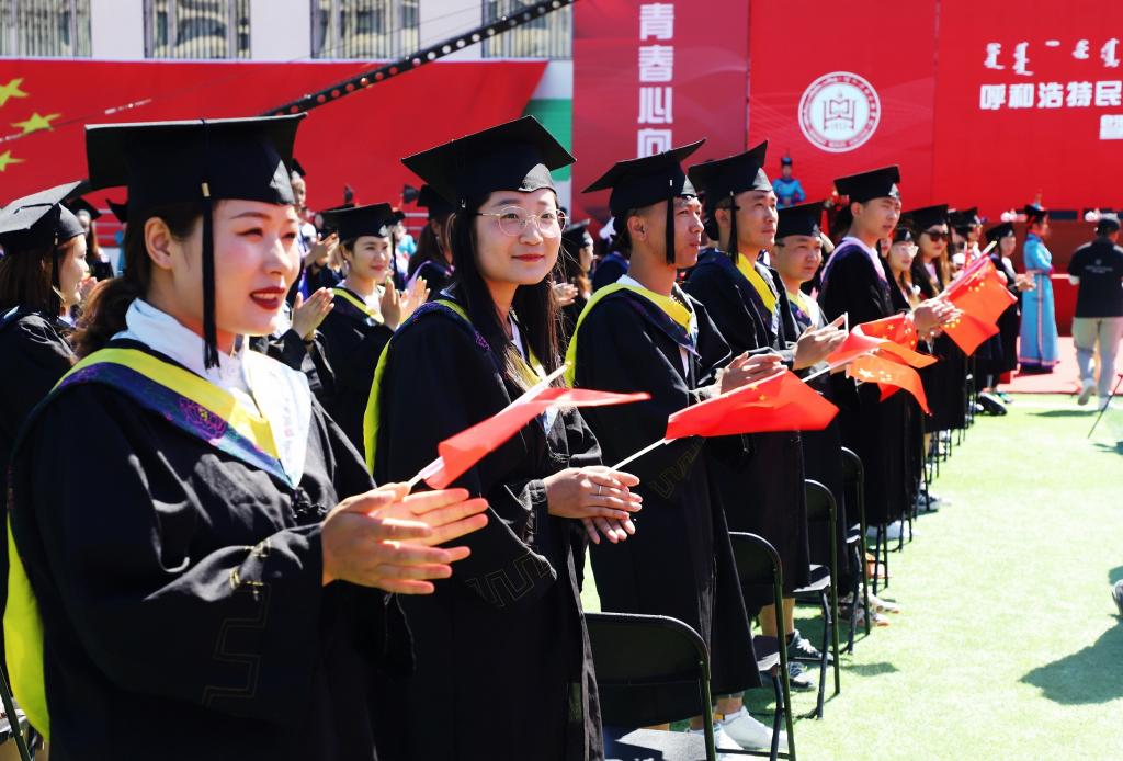 毕业生代表经济管理学院何超越同学饱含深情地回忆了在校学习生活的难忘时光,表达了对母校感谢与祝福。教师代表外国语学院满都呼老师用通俗、轻松又幽默的话语分享了学校的发展变化和优秀校友的故事,并寄语毕业生在未来的道路上行稳致远,在平凡的人生中追求卓越的成绩。