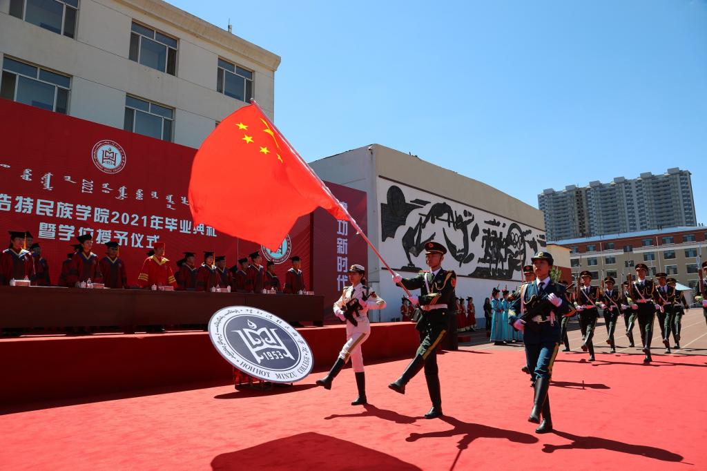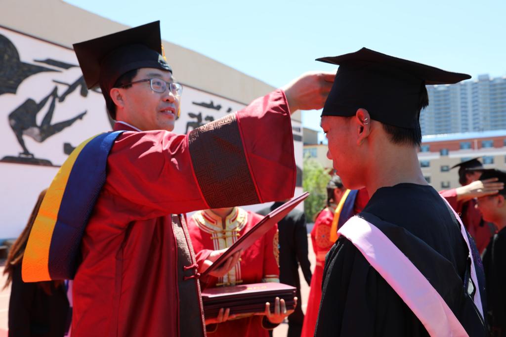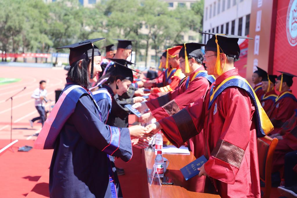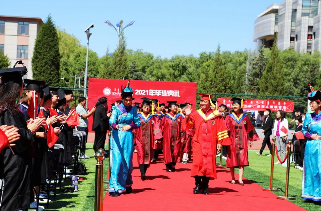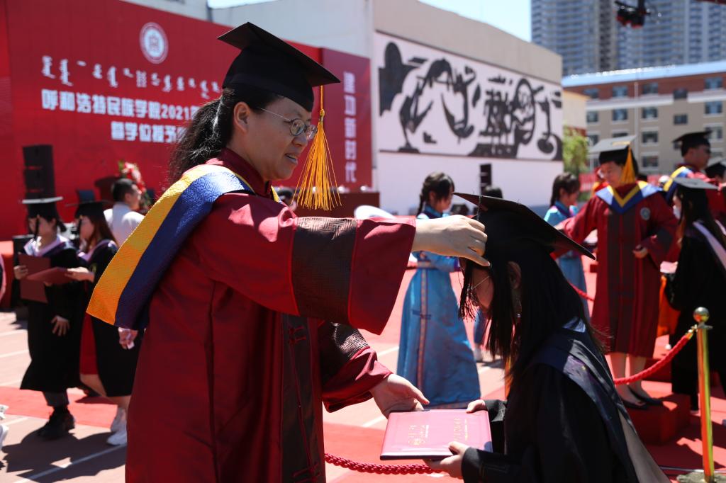毕业典礼上,教务处副处长哈斯额尔德尼宣读了学校本专科生毕业及学士学位授予情况。韩伟新副校长宣读了《关于表彰2021届优秀毕业生的决定》。校领导为优秀毕业生颁奖。