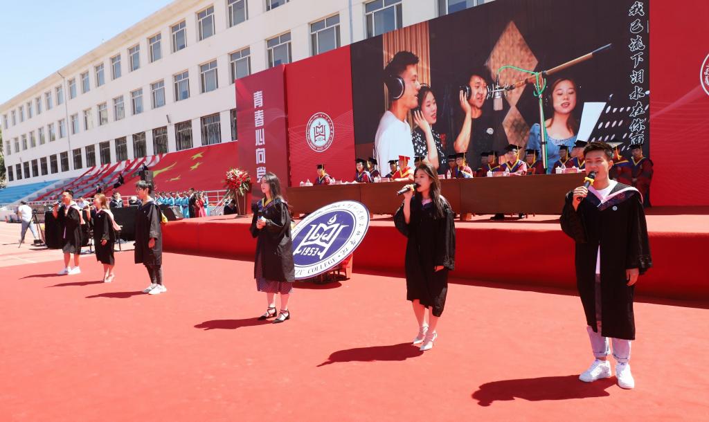 随后,毕业生代表表演了舞蹈《礼赞》和歌曲《起风了》;各二级学院辅导员代表及毕业生代表朗诵《昂首奋进新时代 扬帆启航新征程》。