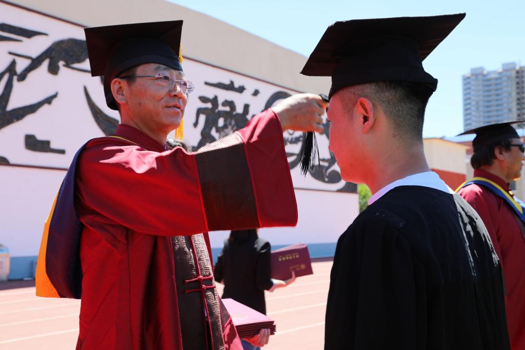 学校学位评定委员会成员为2021届毕业生们颁发了学位证书并拨穗正官。2021届毕业生代表向校领导、老师们敬献鲜花,表达对学校、对老师们深深的感恩之情。