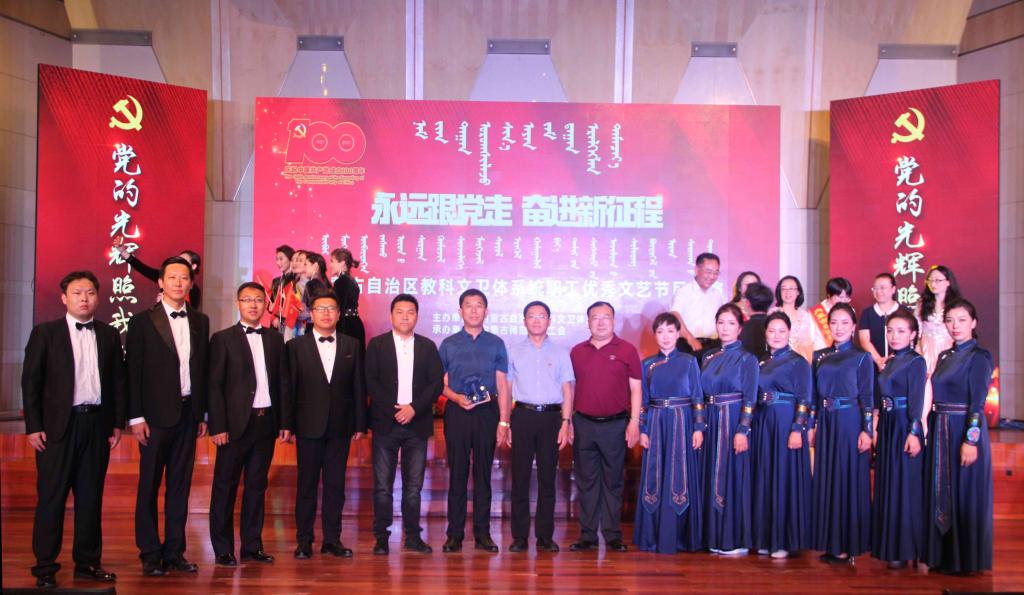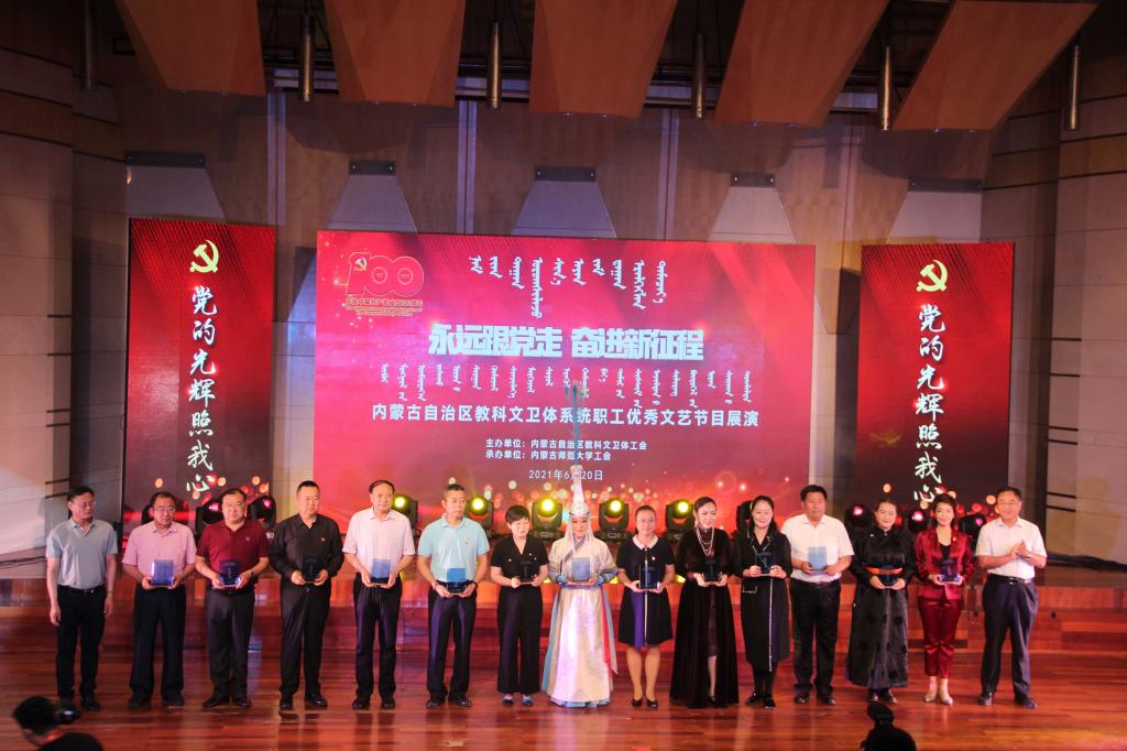 6月20日晚,“永远跟党走 奋进新征程”庆祝建党100周年全区教科文卫体系统职工优秀文艺节目展演活动在内蒙古师范大学顺利举行,自治区、总工会和主要高校领导参加了活动。best365党委委员、副校长高喜天和校工会全体人员及best365参演代表队参加了活动。