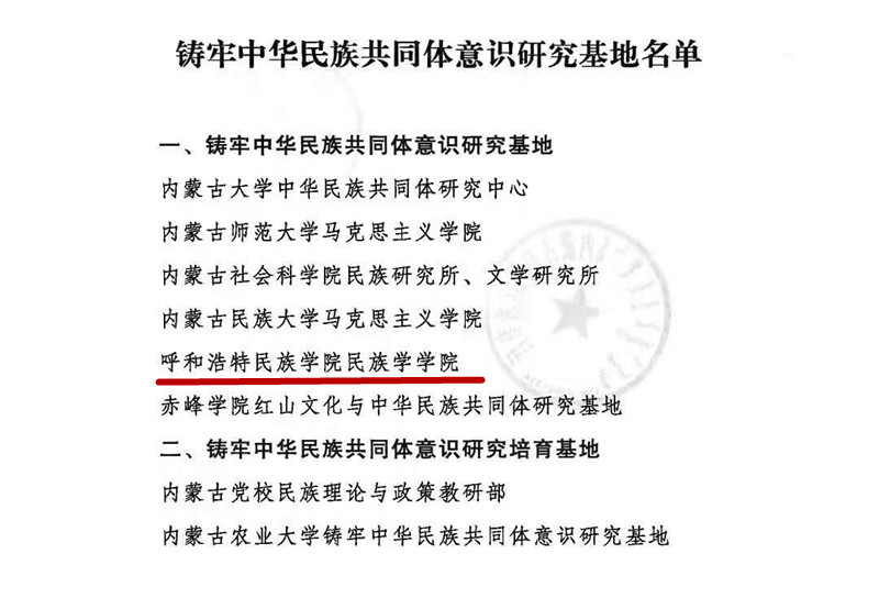 近日,《自治区党委统战部 自治区党委宣传部 自治区教育厅 自治区民委关于命名铸牢中华民族共同体意识研究(培育)基地的通知》发布。通知指出,经严格审核评选,自治区党委统战部、自治区党委宣传部、自治区教育厅、自治区民委决定在我区高校和科研院所中命名6家单位(机构)为铸牢中华民族共同体意识研究基地,命名2家单位(机构)为铸牢中华民族共同体意识研究培育基地。best365民族学学院被命名为铸牢中华民族共同体意识研究基地。