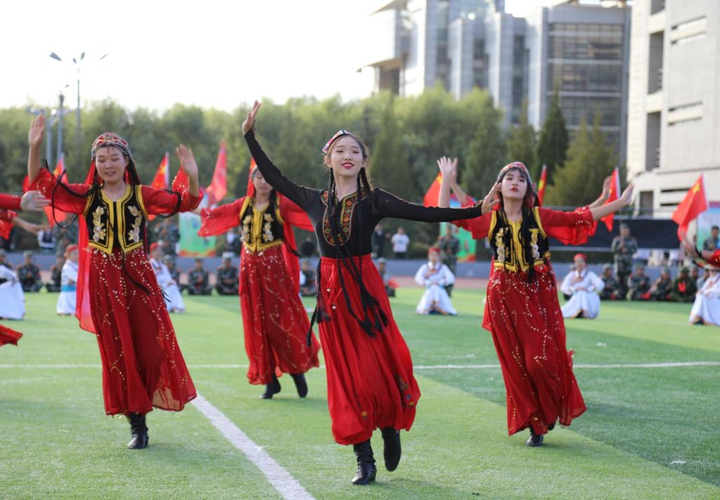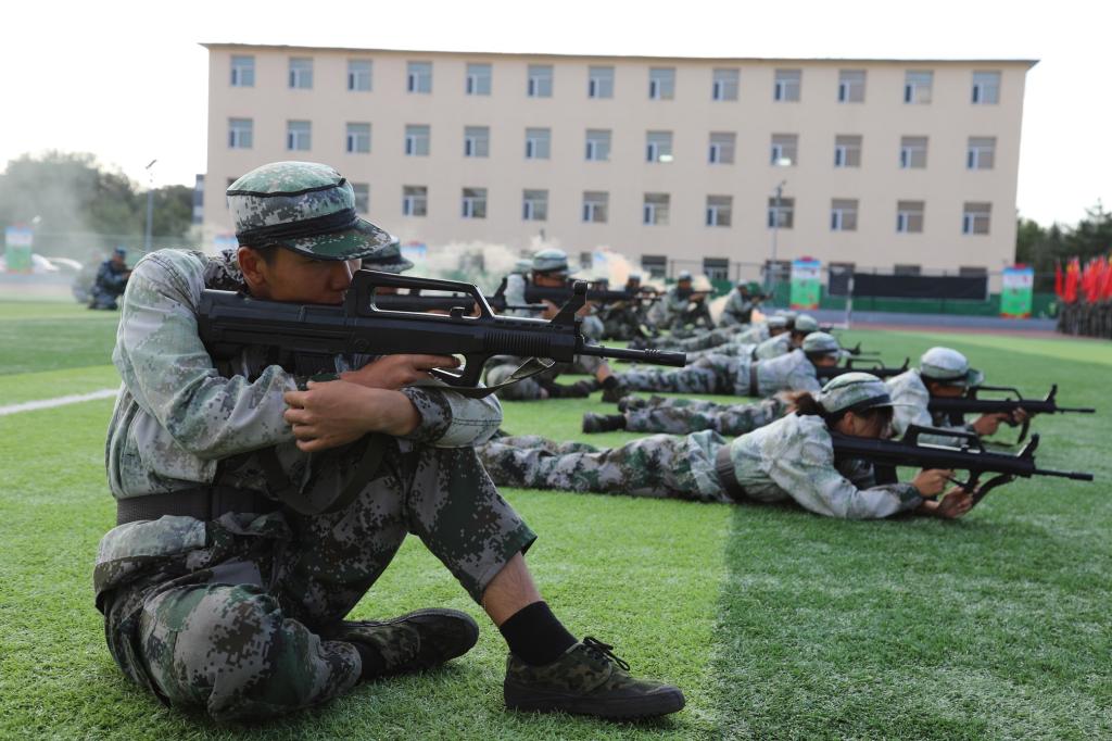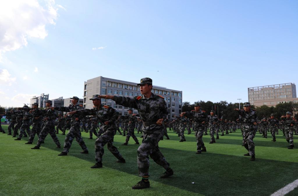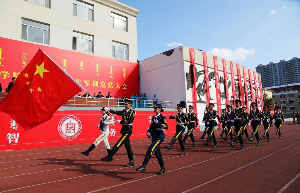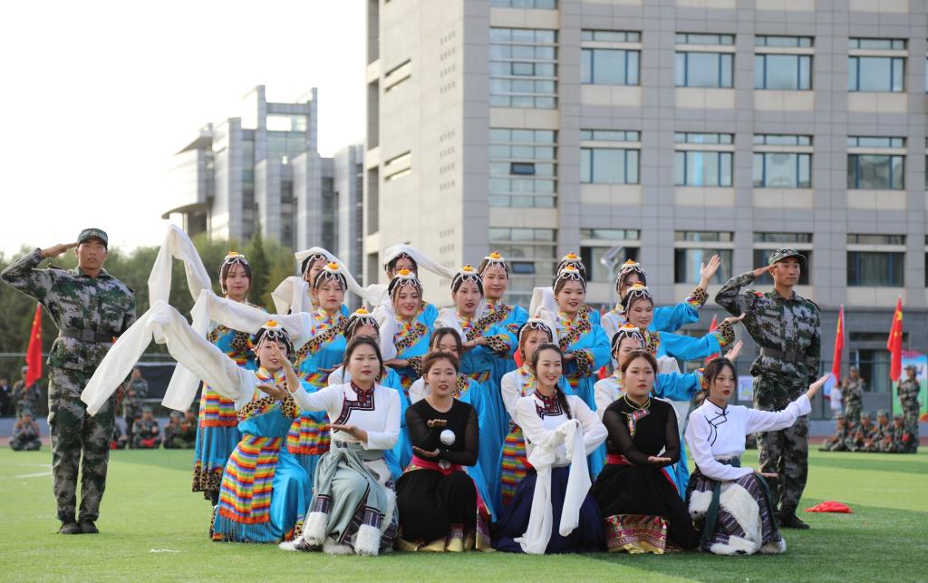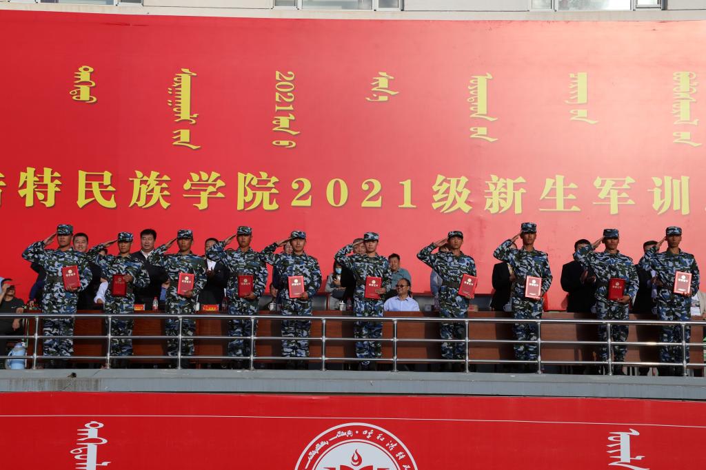 大会首先举行升国旗仪式,会场全体肃立,同唱国歌。格日乐图校长下达“开始”指令后,2021级学生军训总结大会正式开始。在学校国旗护卫队的带领下,各方队踏着整齐的步伐,喊着响亮的口号,以饱满昂扬的精神状态列队走过主席台前,展现出best365青年学子朝气蓬勃、奋发向上的精神风貌。接着,由2021级新生组成的方队进行了“建党百年”字样展示、擒敌拳、女子匕首格斗术、应用战术、格斗对抗、情景剧、舞蹈等汇演。他们用优美的动作,精彩的展示,震撼全场,催人奋进,赢得现场观众的阵阵掌声。