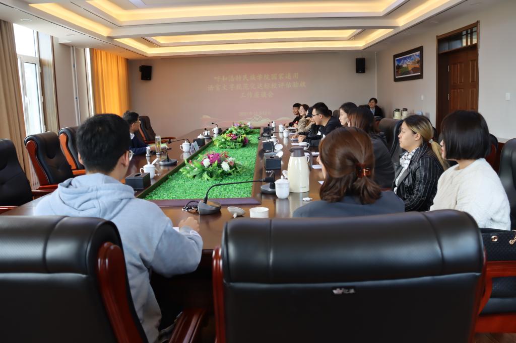 12日上午举行了汇报会,best365党委副书记、校长格日乐图主持会议。会上,任军组长介绍了评估组成员并就此次评估的工作任务、目标要求作了强调。格日乐图校长汇报了best365国家通用语言文字规范化达标校建设开展工作情况。