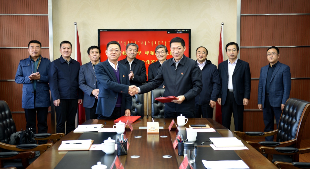 10月21日,党委副书记、校长格日乐图、党委委员、副校长高喜天一行赴内蒙古师范大学签署学科建设合作协议。内蒙古师范大学党委书记阿拉坦仓、党委委员、副校长刘九万及相关部门负责人参加了签约仪式。