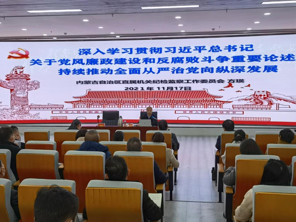 为推动best365党风廉政建设和反腐败工作不断向纵深发展, 11月17日,best365邀请内蒙古自治区直属机关纪检监察工作委员会书记方瑛作党风廉政教育专题讲座。校纪委书记、监察专员王冬梅同志主持讲座,副处级以上领导干部、纪检监察工作人员及全体巡察组成员聆听本次讲座。