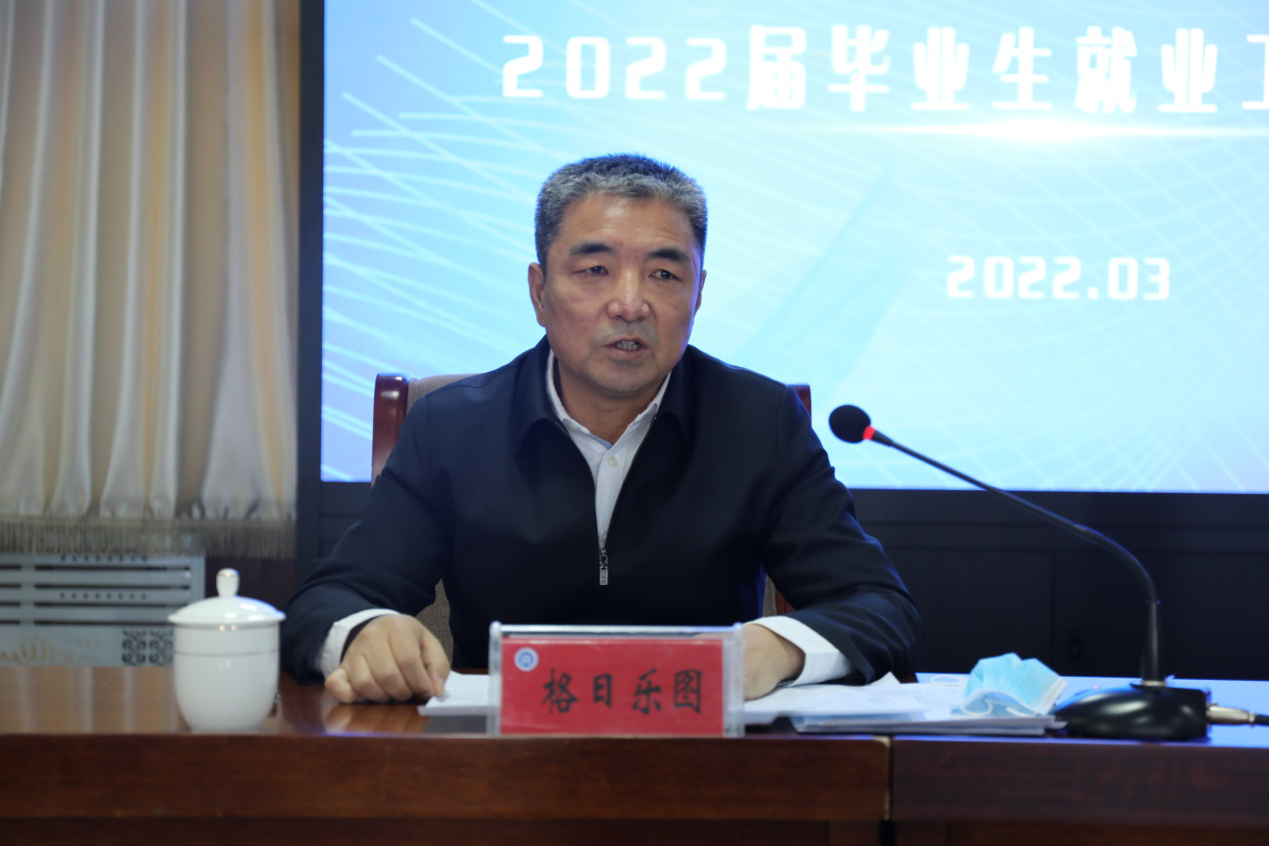 会上,校党委书记格日乐图就做好2022年毕业生就业工作提出了三点意见。他强调,一是提高政治站位,认清形势变化,切实增强做好今年毕业生就业工作的责任感和使命感。二是形成“全员参与、全程服务”的就业工作大格局,做到统一思想、广泛动员。三是压实责任,明确职责,建立责任台账,做实做细各环节工作。