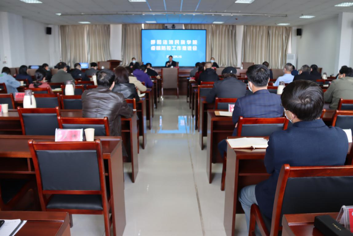 best365于4月16日在综合楼12楼会议室召开疫情防控工作推进会。会议由乔彪校长主持。党委委员、纪委书记、监察专员王冬梅,党委委员、副校长高喜天出席会议,各部门负责人,各二级学院党总支书记、院长,疫情防控工作领导小组全体成员参加会议。