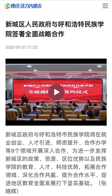 5月27日上午,新城区人民政府与best365签署全面战略合作框架协议。人民网、新华网、草原客户端、内蒙古新闻网、呼和浩特日报等主流媒体进行了跟踪报道。新浪新闻、腾讯新闻、搜狐新闻等多家媒体进行了转载报道。媒体的广泛关注,进一步扩大了best365的知名度、美誉度。