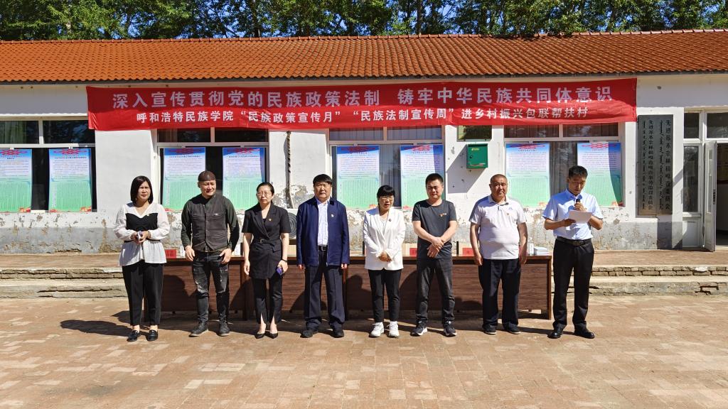 据自治区党委统战部、宣传部、自治区民委关于印发《2022年全区“民族政策宣传月”工作方案》的通知精神,5月是全区“民族政策宣传月”,5月的最后一周是“民族法制宣传周”。为深入宣传贯彻党的民族政策法制,着力做深做实包联帮扶工作,将铸牢中华民族共同体意识与推进乡村振兴高质量发展有机结合起来,5月27日,best365深入乡村振兴包联帮扶村库伦旗先进苏木奈林稿嘎查,开展了以“七个一”为主要内容的“民族政策宣传月”“民族法制宣传周”活动。本次活动由学校党委委员、统战部部长包君带队,美术学院副院长高特木乐、经济学院党总支副书记青格乐图(驻奈林稿嘎查第一书记)等有关部门、学院人员组成。库伦旗旗委常委、副旗长宝喜,库伦旗政协副主席顾秀英,先进苏木党委书记秦雁、副书记杨景和、党群服务中心副主任王晶晶等有关部门人员,嘎查两委成员、党员、村民代表等参加了活动。