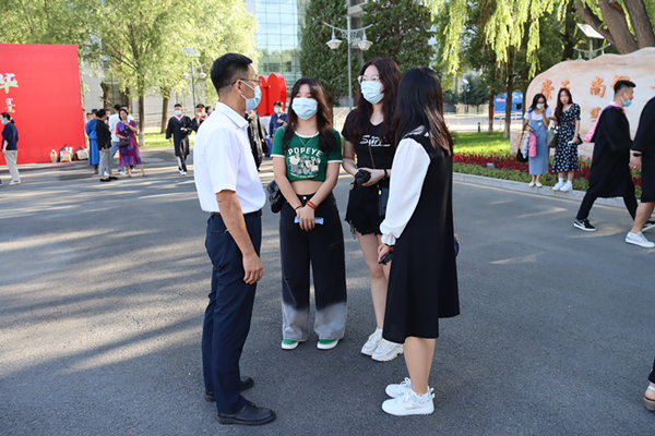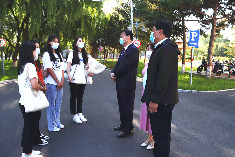 7月6日清早,校党委书记格日乐图,党委副书记、校长乔彪等校领导分别来到学校西门,现场指导各环节工作。校领导与到校学生亲切交流,关心同学们的学习生活情况,希望大家能够正确认识和积极配合学校的各项管控措施,也祝贺同学们顺利毕业,前程似锦。
