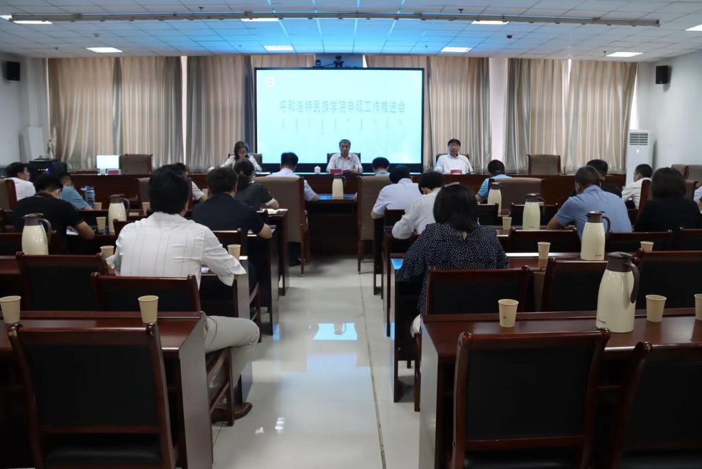 为了进一步凝聚思想共识,明确工作目标,压实工作责任,厘清工作任务,加快推进学校申硕工作,7月13日上午,在综合楼12楼会议室召开申硕工作推进会。校党委书记格日乐图,党委副书记、校长乔彪,党委副书记胡春梅出席会议。各职能部门负责人,各二级学院书记、院长,申报学科相关学院领导班子成员及申硕工作专项工作组全体成员,共计100余人参加了会议。会议由校党委书记格日乐图主持。