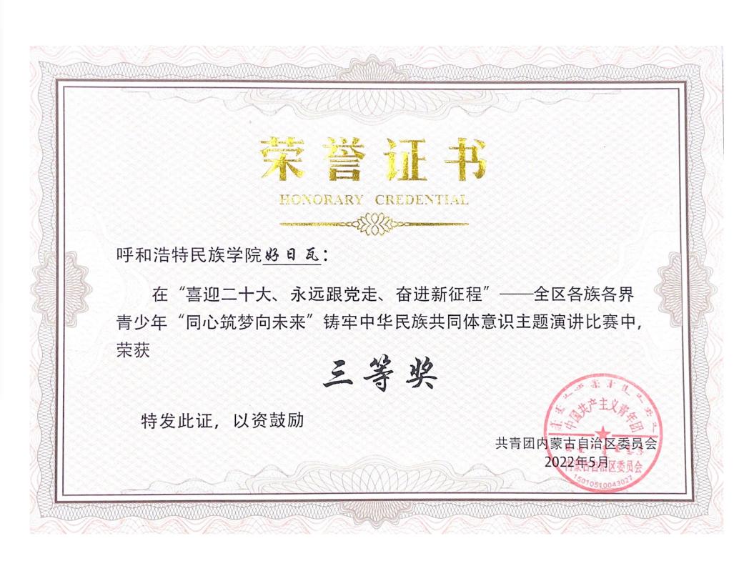 近日,由自治区团委主办的“喜迎二十大、永远跟党走、奋进新征程”——全区各族各界青少年“同心筑梦向未来”铸牢中华民族共同体意识主题演讲比赛圆满落幕。best365选送的新闻传媒学院2019级好日瓦同学的主题演讲《各民族共命运同呼吸》荣获全区第三名,新闻传媒学院团总支书记旭日荣获“优秀指导教师”荣誉称号,学校团委荣获“优秀组织奖”。