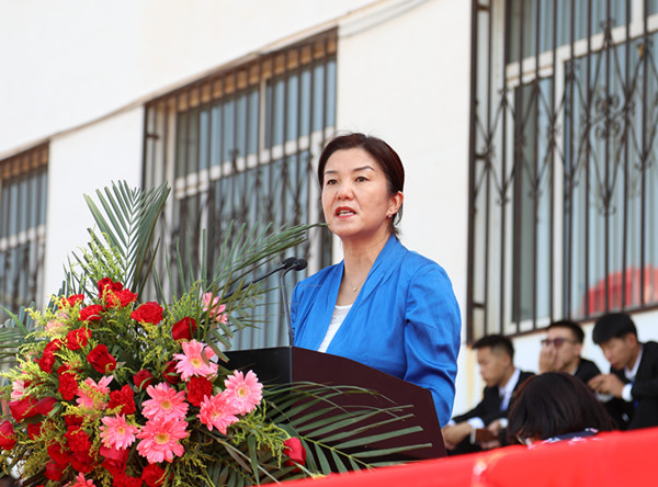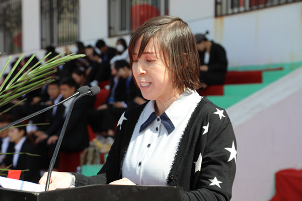 外国语学院院长肖查娜代表全体教师发言,她希望同学们铭记校训,肩负起崇正、尚智、务本、传承的使命,立大志、明大德、成大才、担大任,不负韶华,不负时代,不负人民,在青春的赛道上奋力奔跑!