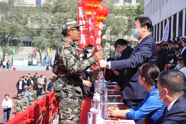 9月18日上午,best3652022级学生开学典礼暨军训总结表彰大会在南院操场隆重举行。学校党委书记格日乐图,党委副书记、校长乔彪,党委副书记胡春梅,副校长纳丽娜,党委委员、纪委书记、监察专员王冬梅,党委委员、副校长高喜天,党委委员、副校长刘瑞鸿出席大会,各职能部门负责人,二级学院党总支书记、院长、学工办主任、辅导员、新生班主任以及全体2022级学生共2400余人参加了大会。大会由党委委员、副校长高喜天主持。