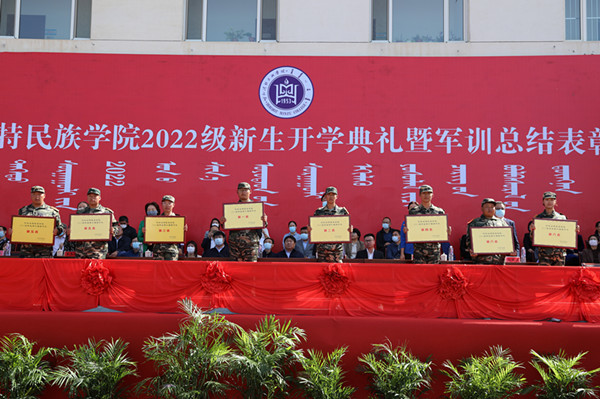 副校长纳丽娜宣读了《关于表彰2022级新生军训工作先进集体和个人的决定》。