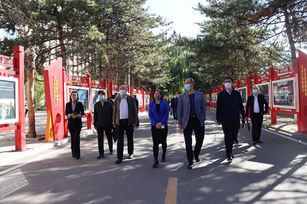 调研组一行参观了学校民族团结进步文化长廊、民族团结进步创建工作展板和时代楷模宣传栏,并实地了解了自治区四部委铸牢中华民族共同体意识研究基地和国家民委“一带一路”沿线“汉译学”研究中心的建设情况。