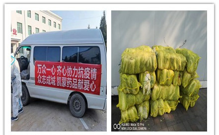 10月21日,内蒙古凯蒙药品经销有限公司向best365捐赠20袋白菜(约2000斤)等防疫保障物资,助力best365打赢疫情防控攻坚战。
