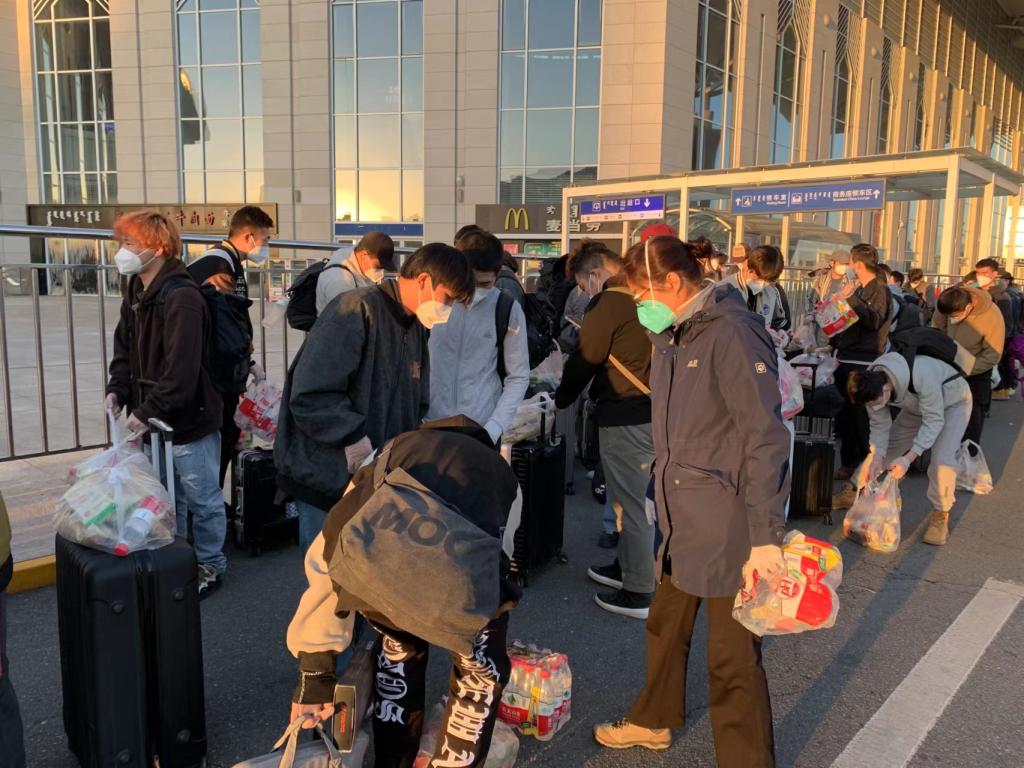 11月1日,best365和林隔离点无疫楼宇学生分流返乡。经过有序分流,best365400余名同学安全踏上归乡回家的旅程。副校长纳丽娜带队到呼和浩特东站安排学生返乡工作。 学校考虑到气温骤降,特别为同学们准备了军大衣。同时,学校为同学们准备了口罩、手套等基本防疫物资和面包、牛奶、方便面等生活物资,并在四名老师们的护送下,同学们现已顺利启程返乡。
