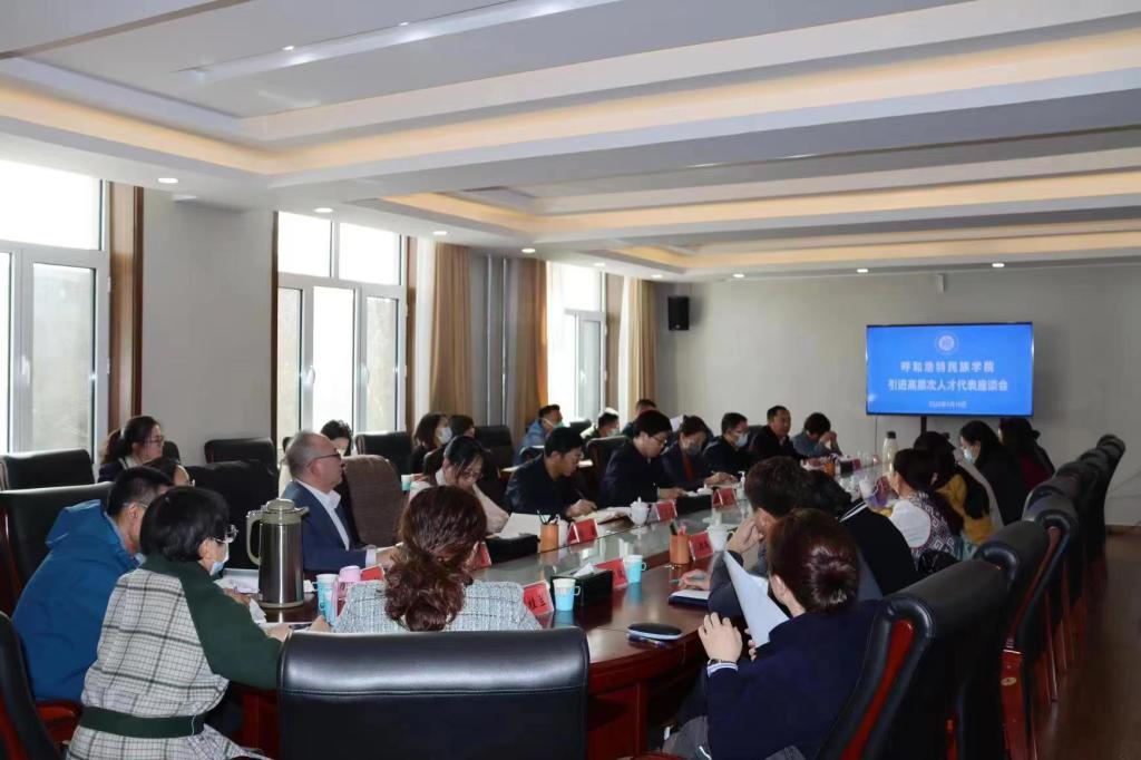 3月10日下午,学校党委副书记、校长韩伟新在办公楼二楼会议室主持召开学校引进高层次人才代表座谈会,副校长纳丽娜、高喜天、刘瑞鸿出席会议,学校引进的高层次人才代表18人参加座谈。