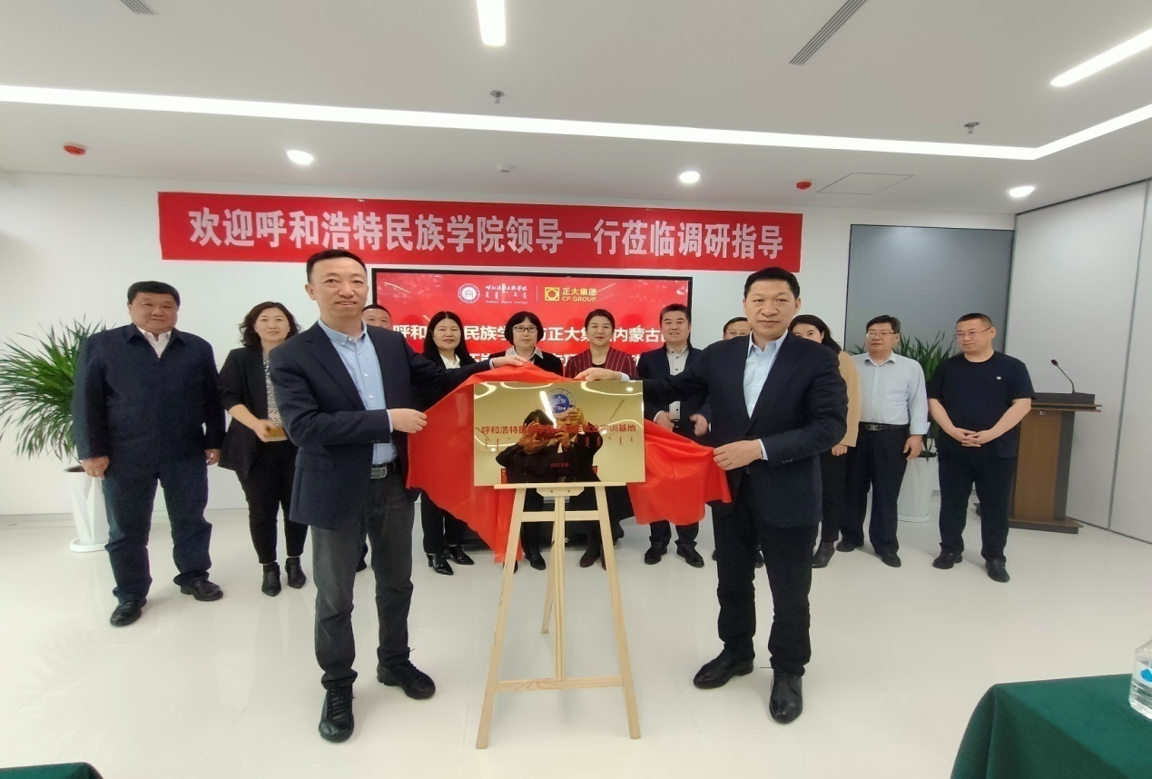 随后,人力总监杨萍分享了正大校企合作经验。正大集团内蒙古区招聘科长高佳琪作为优秀校友为与会双方介绍“正大杯”大学生双创大赛合作项目。学校与正大集团内蒙古区签订了校企合作协议,刘九万与王瑞军共同为就业实训基地揭牌。