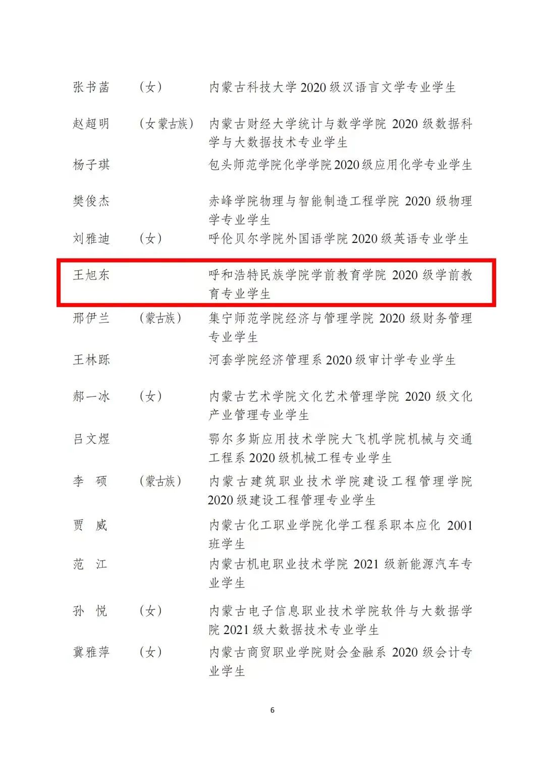 2023年是全面贯彻落实党的二十大精神的开局之年,为表彰先进典型、弘扬奋斗精神,进一步鼓励全区各级共青团组织和广大团员、团干部在团的建设和各项工作中挺膺担当,推动形成比学赶超、争先创优的新气象。在五四青年节到来之际,共青团内蒙古自治区委员会开展了2022年度全区优秀共青团员、全区优秀共青团干部、全区五四红旗团委 (团支部)评选表彰工作,best365学前教育学院2020级学前教育专业王旭东同学光荣上榜,荣获“全区优秀共青团员”荣誉称号。