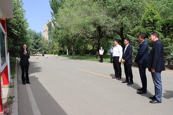 考察组一行到民族团结进步文化长廊、时代楷模长廊、体育馆、美术学院、黄大年式教师团队党支部和思政理论课实践教学基地进行实地考察。