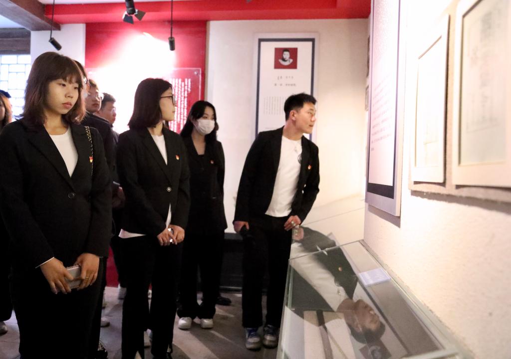 活动中,党员干部和青年学生代表列队瞻仰革命烈士雕像,向革命烈士默哀致敬。霍武、刘九万代表指导组和校党委敬献花篮。随后,全体人员参观了馆中的各展厅,不时驻足认真观看展厅所陈列具有历史意义的物品和图片,通过烈士纪念馆讲解员的介绍,大家对多松年烈士生平简介和革命事迹有了全面深入的了解。