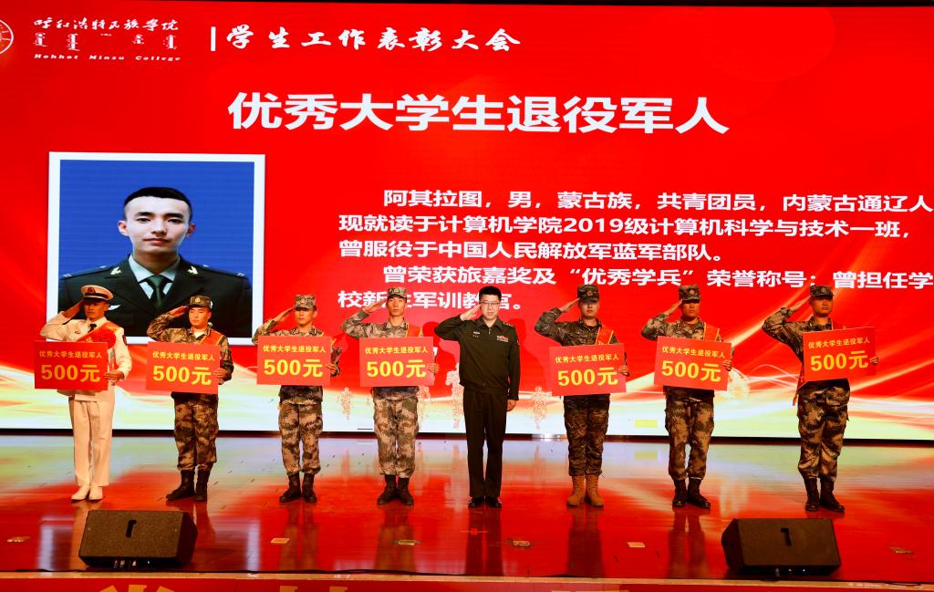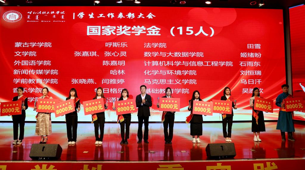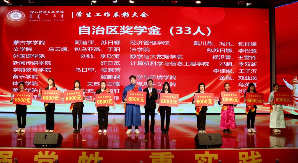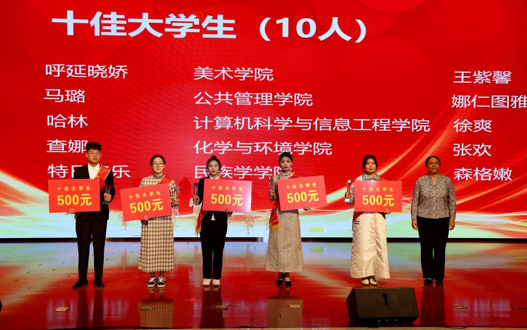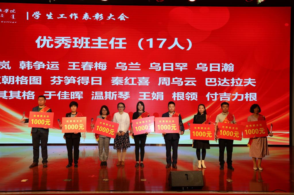大会分为“请党放心,强国有我”“以人为本,立德树人”“砥砺前行,展望未来”三个篇章,对获得“国家奖学金”、“自治区奖学金”、“乌兰夫奖学金”、“校长奖学金”、“十佳大学生”、“大学生年度人物”、“优秀大学生退役军人”的学生及“优秀班主任”、“优秀辅导员”、“学生工作先进个人”、“辅导员年度人物”、“专项学生工作先进集体”、“学生工作先进集体”进行了表彰。与会领导分别为受表彰的先进集体和个人颁奖。