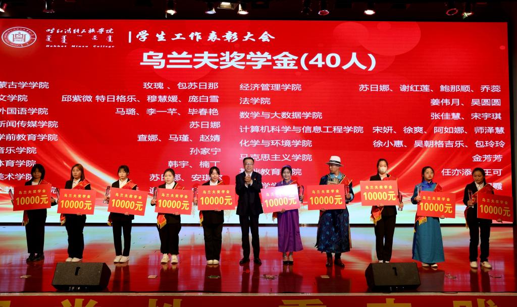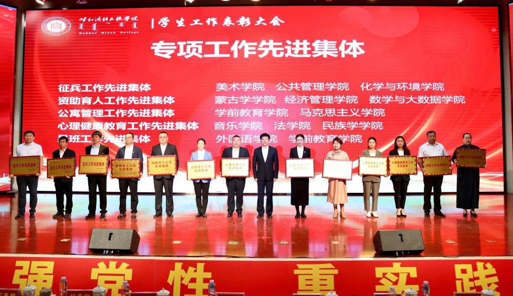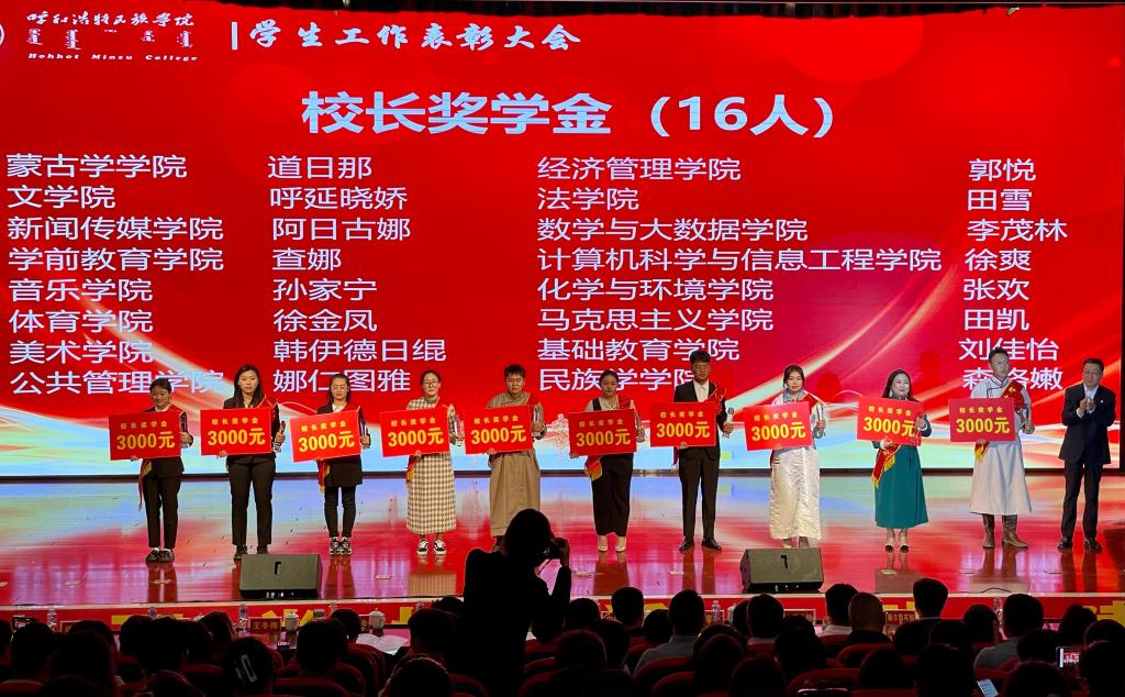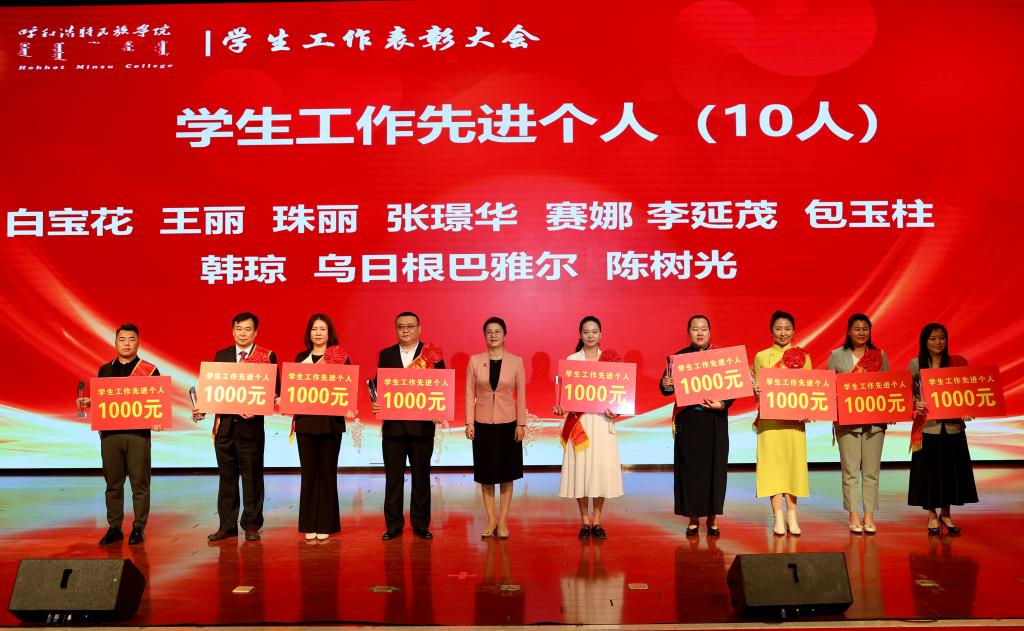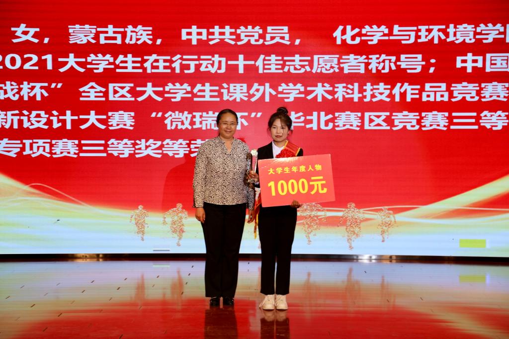 大会分为“请党放心,强国有我”“以人为本,立德树人”“砥砺前行,展望未来”三个篇章,对获得“国家奖学金”、“自治区奖学金”、“乌兰夫奖学金”、“校长奖学金”、“十佳大学生”、“大学生年度人物”、“优秀大学生退役军人”的学生及“优秀班主任”、“优秀辅导员”、“学生工作先进个人”、“辅导员年度人物”、“专项学生工作先进集体”、“学生工作先进集体”进行了表彰。与会领导分别为受表彰的先进集体和个人颁奖。