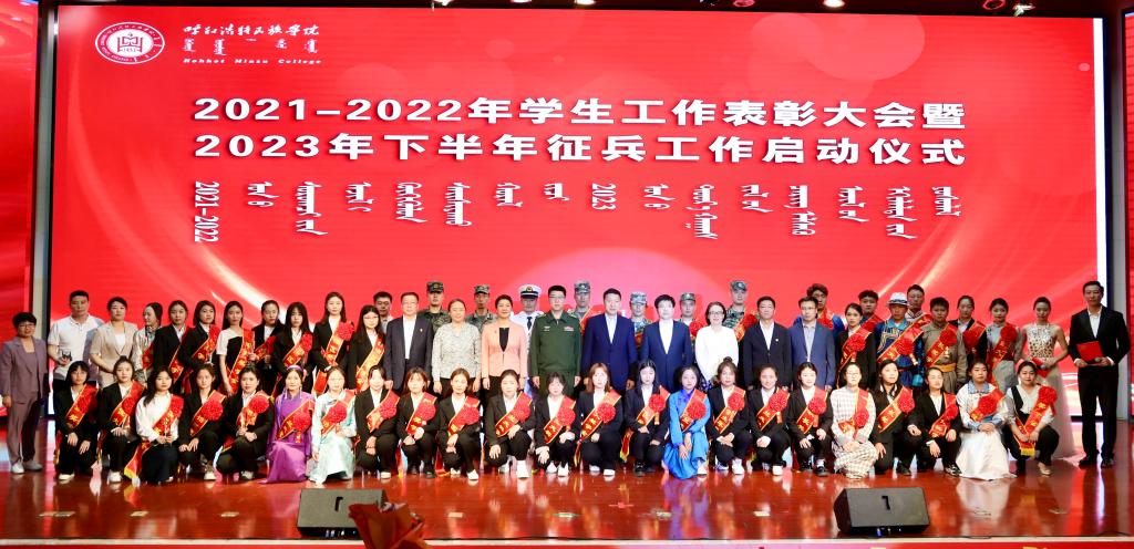 6月2日下午,best3652021-2022年学生工作表彰大会暨2023年下半年征兵工作启动仪式在北院图书馆二楼报告厅隆重举行。学校党委书记刘九万,党委副书记、校长韩伟新,党委副书记胡春梅,副校长纳丽娜,党委委员、纪委书记、监察专员王冬梅,党委委员、副校长高喜天、刘瑞鸿出席会议。新城区武装部政委宋晓光应邀出席会议。
