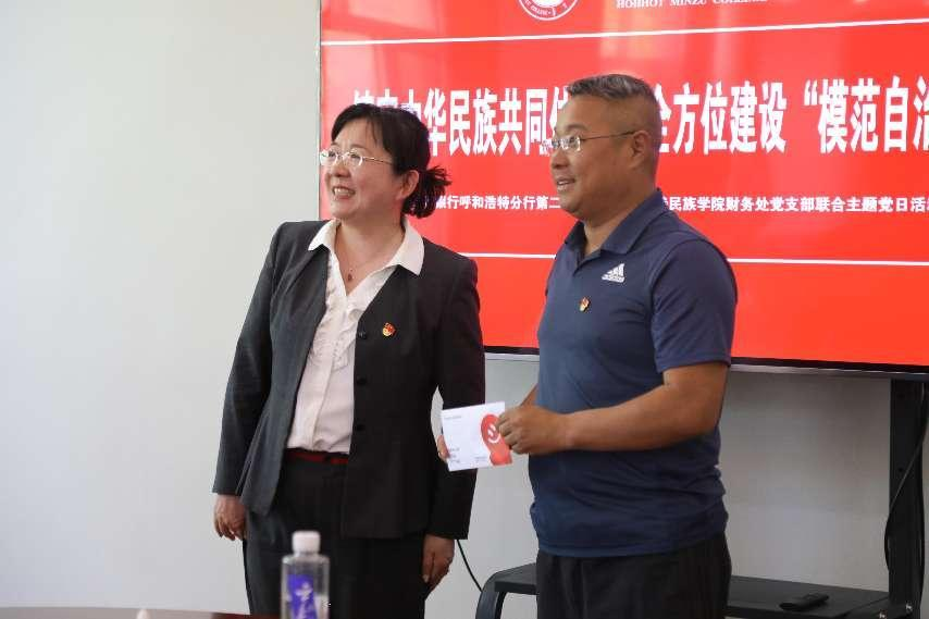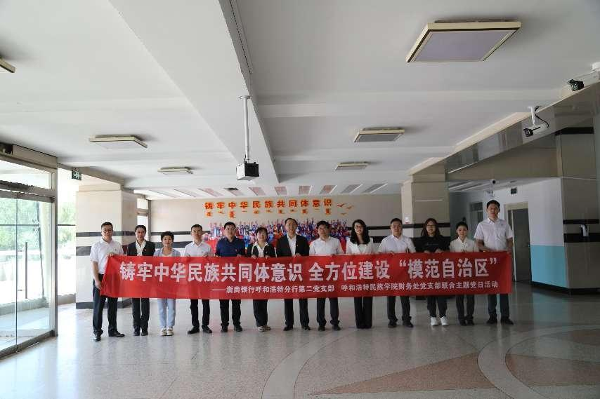 为深入学习贯彻党的二十大精神,全面贯彻习近平总书记关于加强和改进民族工作的重要思想,有形有感有效铸牢中华民族共同体意识,扎实推动主题教育走深走实,6月14日上午,财务党支部邀请浙商银行呼和浩特分行第二党支部联合开展“铸牢中华民族共同体意识 全方位建设模范自治区”主题党日活动。浙商银行呼和浩特分行副行长王喆参加活动。best365党委副书记、校长韩伟新、副校长纳丽娜应邀出席活动。活动由best365财务处党支部书记、财务处处长王小梅主持。