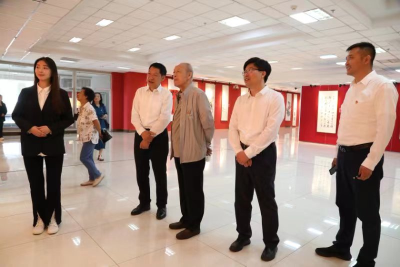 观展期间,到场人员还到五层,参观学习了主题教育书画展。