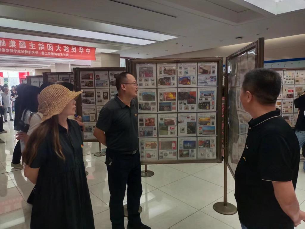 邮票被誉为“国家名片”,是弘扬民族精神、传播优秀文化的重要载体。本次展览以铸牢中华民族共同体意识为主线,共展出16部40框邮集,内容丰富、精品荟萃。题材涉及新中国发展历程、中国共产党的成长史及发展成就、内蒙古发展成就等专题邮集,内容包含《中国共产党历史》《毛泽东》《共和国历程》《弘扬长征魂 同筑中国梦》《建设亮丽内蒙古 共圆伟大中国梦》《生肖收藏的记忆》《中华龙》《呼和浩特邮政史(1908-1957)》《绥远邮政史(1904-1954)》等。展品展现出中华各族儿女在中国共产党的坚强领导下,经济建设、民族团结、文化建设、边疆安定、生态文明建设等方面取得的历史性巨变和辉煌的成就。邮票收集爱好者们现场讲解邮票知识、发展历史、藏品背景等内容,师生受益匪浅。