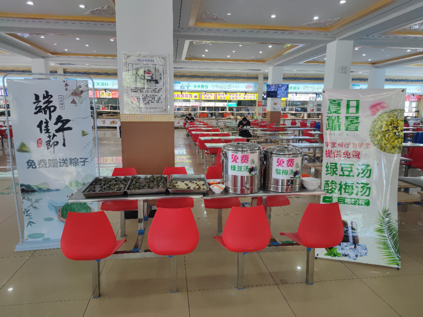 为大力弘扬中华优秀传统文化,在端午佳节期间,学校后勤管理处餐饮服务中心全体职工于6月22日开展“粽情端午”活动,为学生免费提供粽子、凉糕、绿豆汤和酸梅汤。 通过“粽情端午”活动,后勤服务人员结合主题教育始终秉承以爱心、暖心、贴心服务学生的宗旨,充分发挥后勤服务育人功能,引导学生进一步了解传统节日、喜爱传统节日、过好传统节日,促进各民族团结,努力构建和谐校园文化。