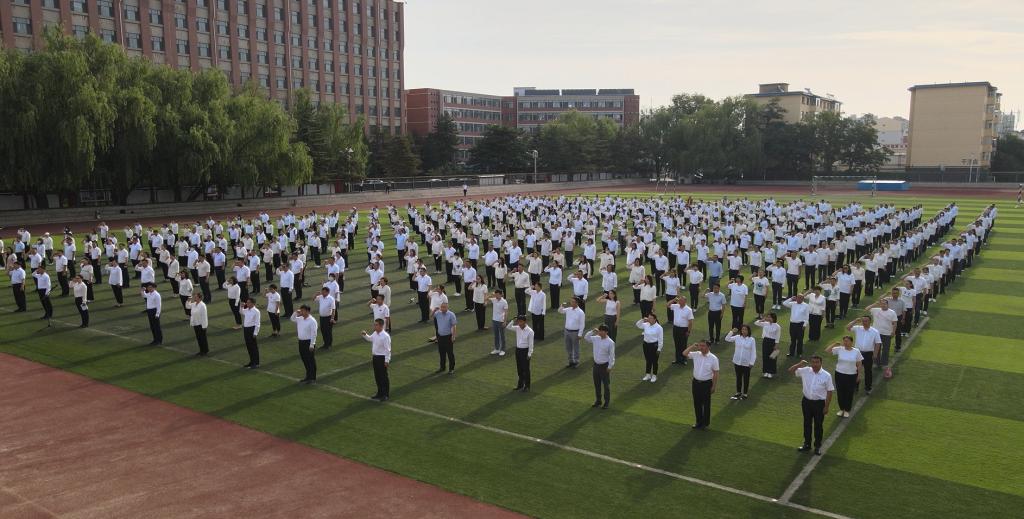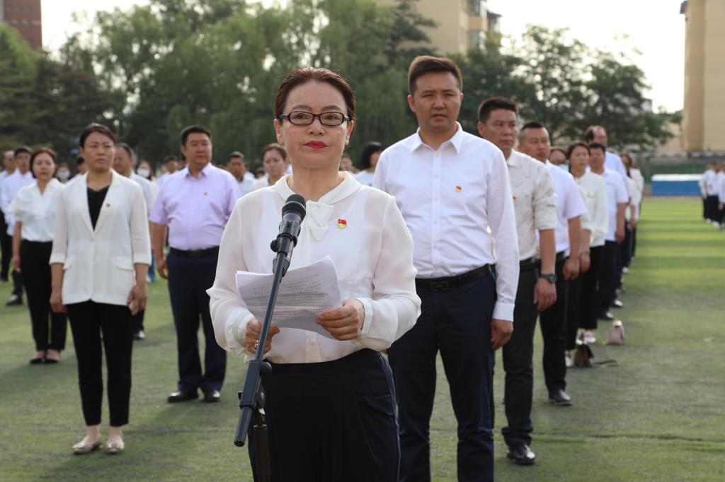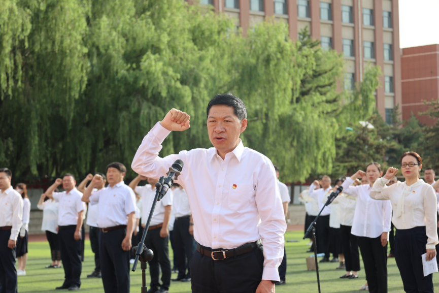 为庆祝中国共产党成立102 周年,持续深入学习贯彻党的二十大精神,全面推动学习贯彻习近平新时代中国特色社会主义思想主题教育走心走深走实,7月1日清晨,best365在北区体育场举行了隆重的升旗仪式和重温入党誓词活动。校党委委员、全校师生党员参加活动。校党委书记刘九万领誓,校党委副书记胡春梅主持仪式。
