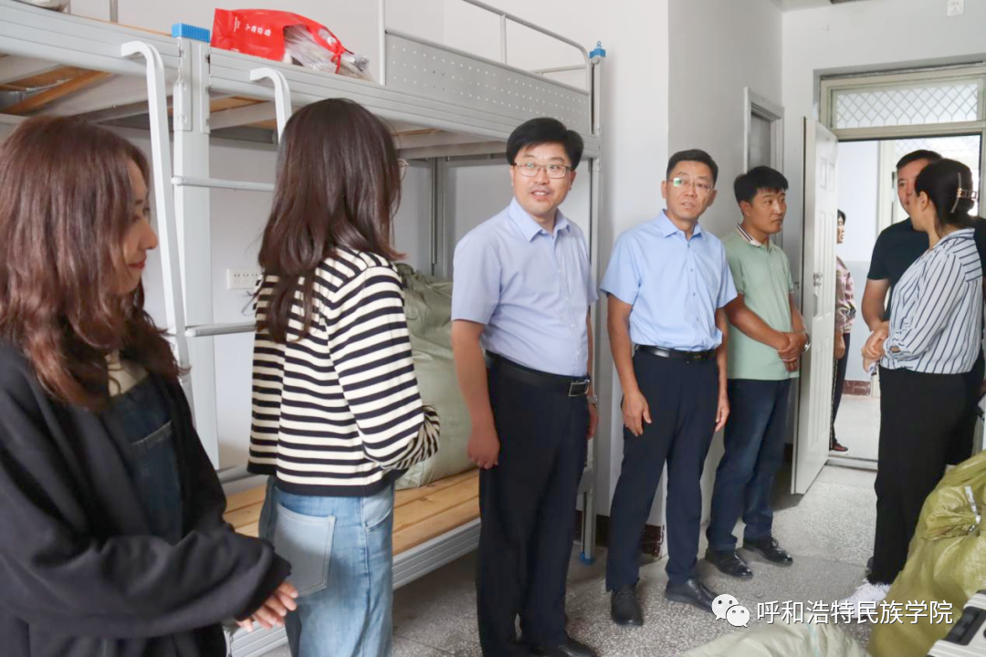 秋季新学期开学之际,8月25-26日,校党委书记刘九万,党委副书记、校长韩伟新,副校长纳丽娜,党委委员、副校长高喜天等校领导深入学生宿舍,现场了解学生宿舍搬迁情况,认真查看学生们的住宿环境,实地了解学生的学习、生活及思想动态,为同学们送去关心和问候。