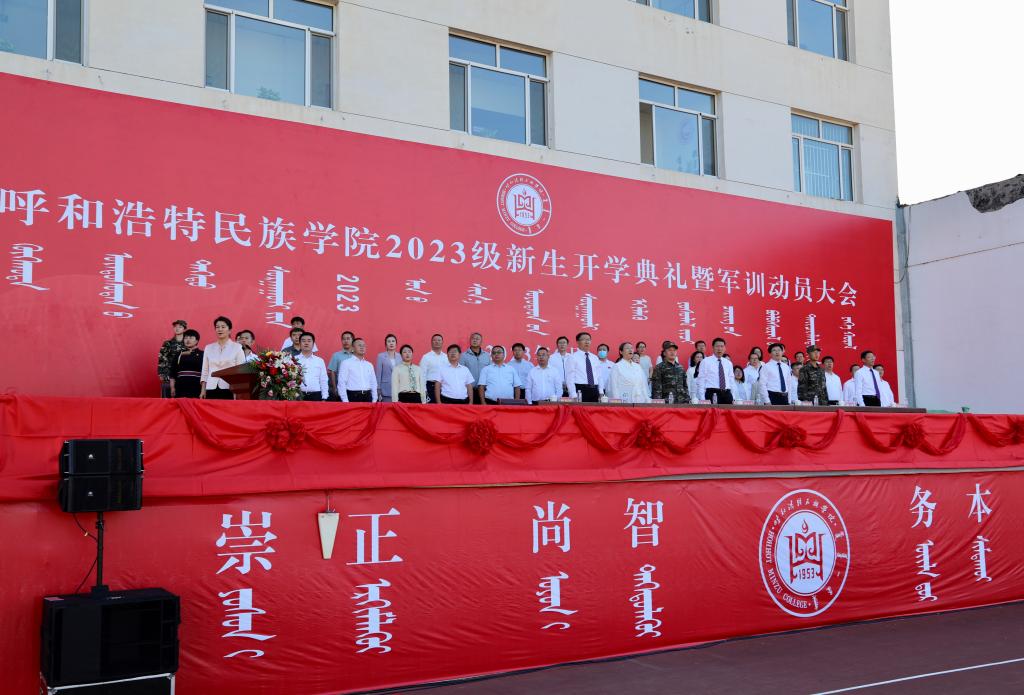 9月5日上午,best3652023级新生开学典礼暨军训动员大会在南院操场举行。学校党委书记刘九万出席大会并为军训团授旗。党委副书记、校长韩伟新出席开学典礼并致辞。副校长纳丽娜主持大会。武警内蒙古总队机动支队机动二大队少校大队长王艳波,武警内蒙古总队机动支队机动二大队机动五中队上尉政治指导员崔斌,党委委员、纪委书记、监察专员王冬梅,党委委员、副校长高喜天,党委委员、副校长刘瑞鸿出席大会。各职能部门负责人,各二级学院党总支书记、院长、学工办主任、辅导员、新生班主任以及全体2023级学生共计2600余人参加了大会。