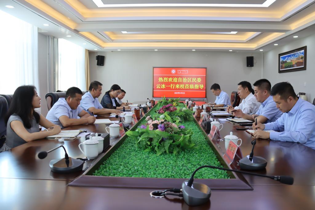 9月6日下午,自治区民委党组成员、专职委员云冰一行来best365调研指导铸牢中华民族共同体意识研究基地建设工作情况。学校党委书记、学校铸牢中华民族共同体意识研究基地主任刘九万主持座谈会。