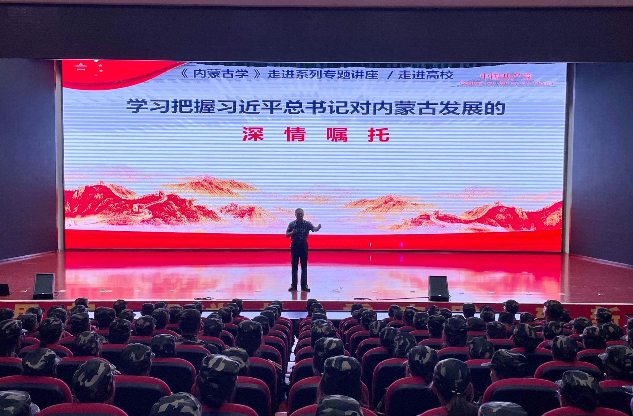 胡益华以“学习把握习近平总书记对内蒙古发展的深情嘱托”为题,从“打造祖国北疆亮丽风景线,书写新征程上内蒙古发展新篇章”、“牢牢把握内蒙古发展的战略定位”、“优化产业结构、发展优势特色产业,在资源型地区转型发展上走出一条生态优先、绿色发展的高质量发展新路子”、“积极融入和服务构建新发展格局”、“切实保障和改善民生、扎实推动共同富裕,让人民群众有更多获得感、幸福感、安全感”、“以铸牢中华民族共同体意识为主线,推动新时代党的民族工作高质量发展”、“大力促进民族文化发展,着力打造祖国北疆文化繁荣发展的风景线”等七个方面深入阐释了习近平总书记考察内蒙古时的重要讲话精神,紧紧围绕推进高质量发展这个首要任务,以铸牢中华民族共同体意识为主线,鼓励同学们牢记嘱托、感恩奋进,争做信念坚定的当代新青年。胡老师的讲座主题鲜明、案例生动,具有很强的理论性、思想性和指导性。