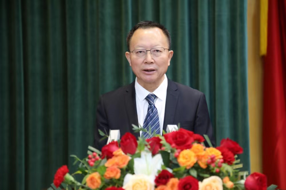 韩伟新作了题为《团结实干 勇毅前行 奋力谱写学校高质量发展新篇章》的工作报告。报告共分三个部分。一是过去三年工作回顾;二是面临的形势与发展思路;三是下一步工作目标及重点任务。