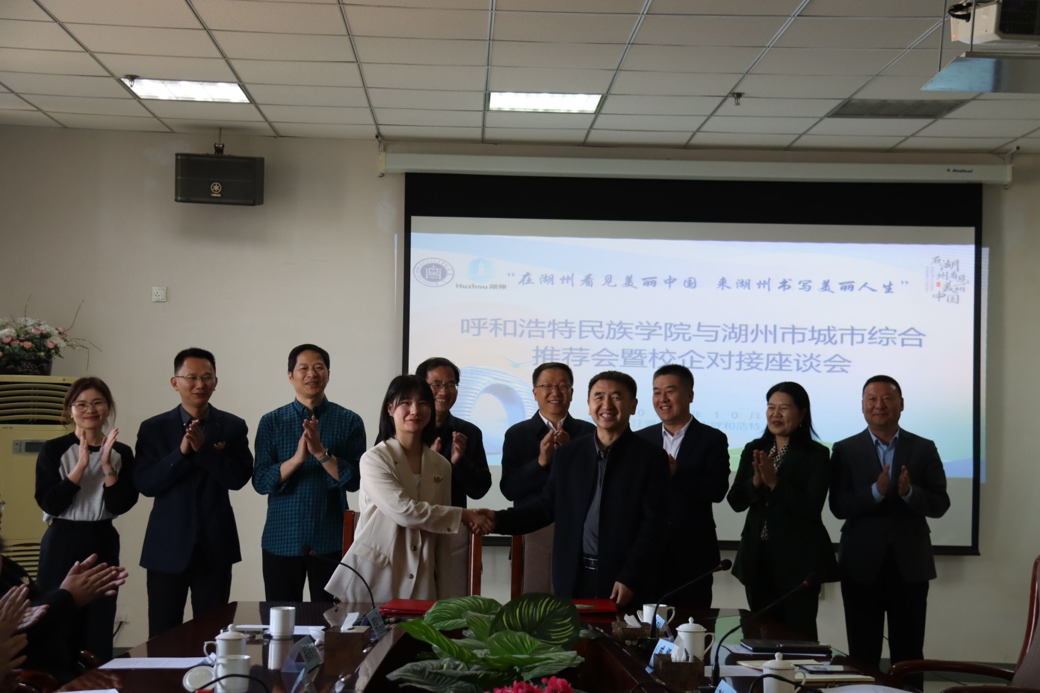 会上,计算机科学学院、公共管理学院、新闻传媒学院分别与湖州乔克网络信息科技有限公司、德清文旅会展有限公司、浙江江边江文化有限公司签订就业实训基地建设协议。