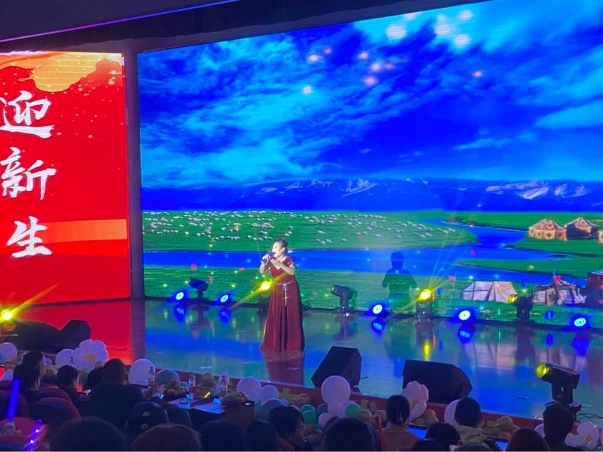 同学们通过歌曲《美丽的草原我的家》、 四胡独奏《牧马青年》、舞蹈《一杯美酒》等节目表达了对学校70周年校庆的美好祝福。