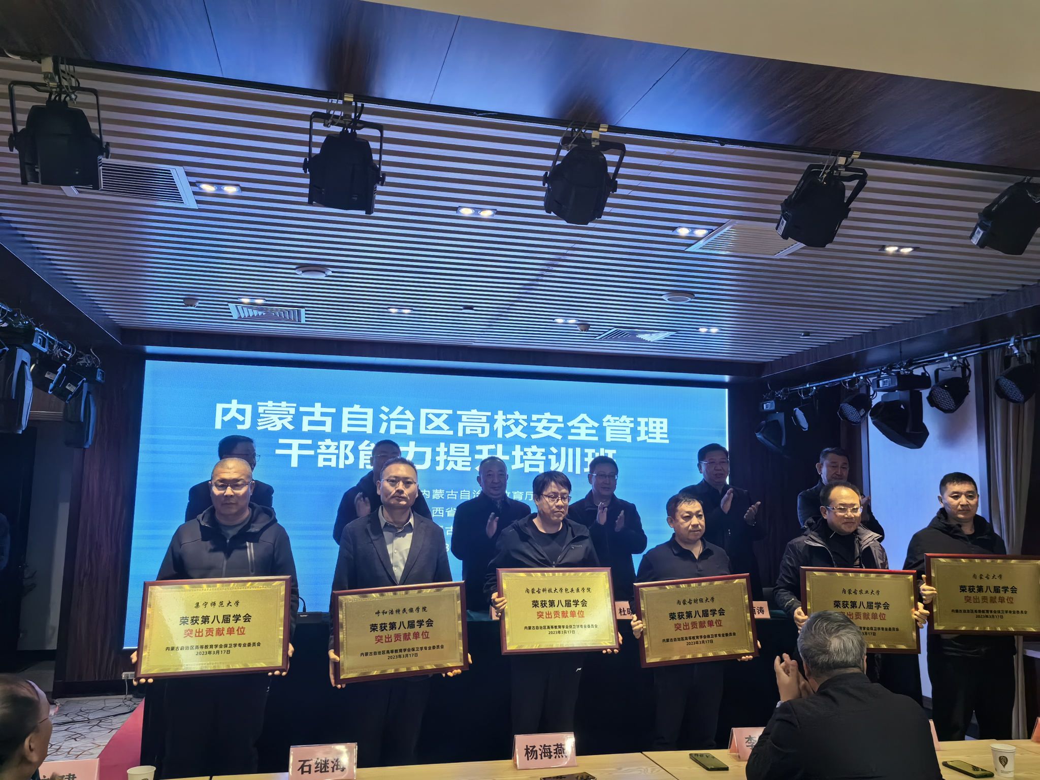 培训班围绕党的二十大作出的推进国家安全体系和能力现代化的战略部署,认真贯彻落实习近平总书记关于校园安全的重要指示批示精神,从高校安全保卫形势、应急处突能力提升、国家安全教育、反恐怖工作等方面进行理论学习和实践操作,强化“时时放心不下”的责任意识,切实守住安全底线,防范化解安全风险,提升平安校园建设能力。会上,对第八届内蒙古高等教育学会保卫学专业委员会15个突出贡献单位、14名突出贡献个人、6个突出贡献团队进行了表彰,best365荣获突出贡献单位奖。