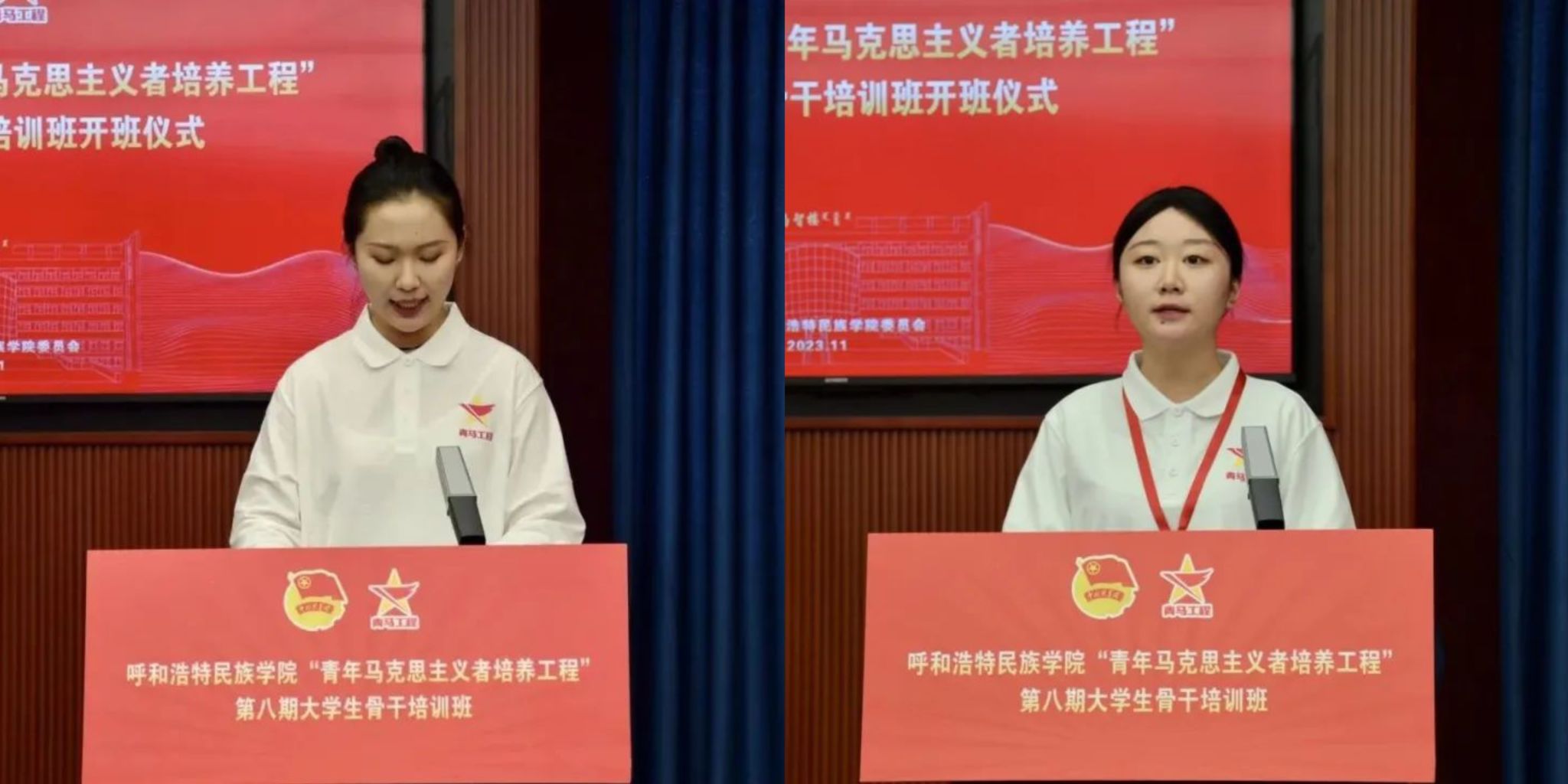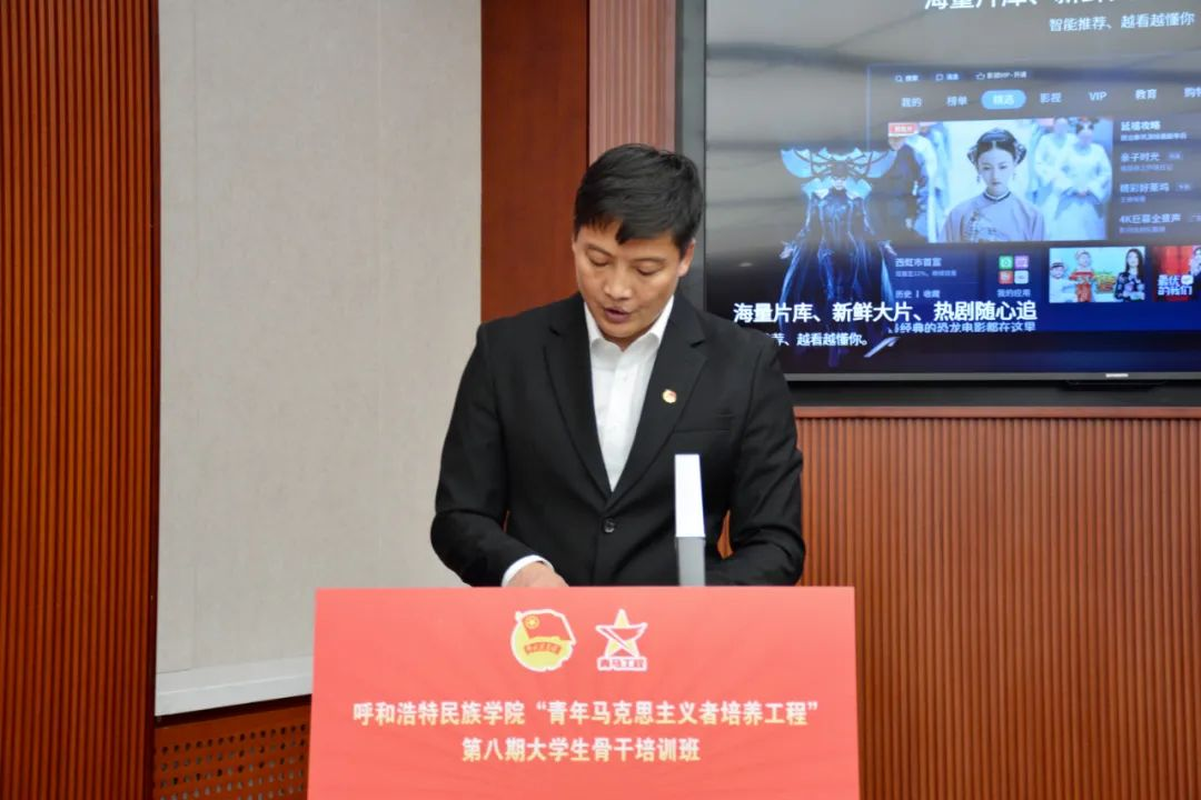 活动现场,雄壮的《义勇军进行曲》奏响,全体师生肃立。本次“青马工程”培训班开班仪式正式拉开序幕。之后由苏伦高娃宣读培训方案。