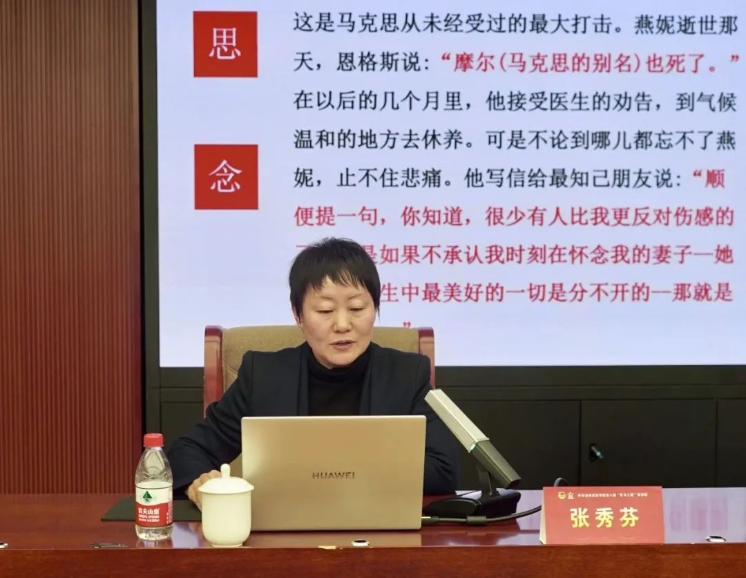 仪式后,由马克思主义学院张秀芬教授为本期青马班讲授第一节课。张秀芬以“寻伟人足迹,坚定理想信念〞为题,通过讲述伟人成长背景、思想演变和伟大成就,让学员们更加深刻地了解“红色政权来之不易、新中国来之不易”的浴血奋战的历史,以铁一般的事实证明“中国共产党为什么能 中国特色社会主义为什么好 归根到底是马克思主义行 ”的道理,激励新时代青年要大力弘扬马克思主义,传承发扬伟大建党精神,书写不愧于新时代的青春华章。