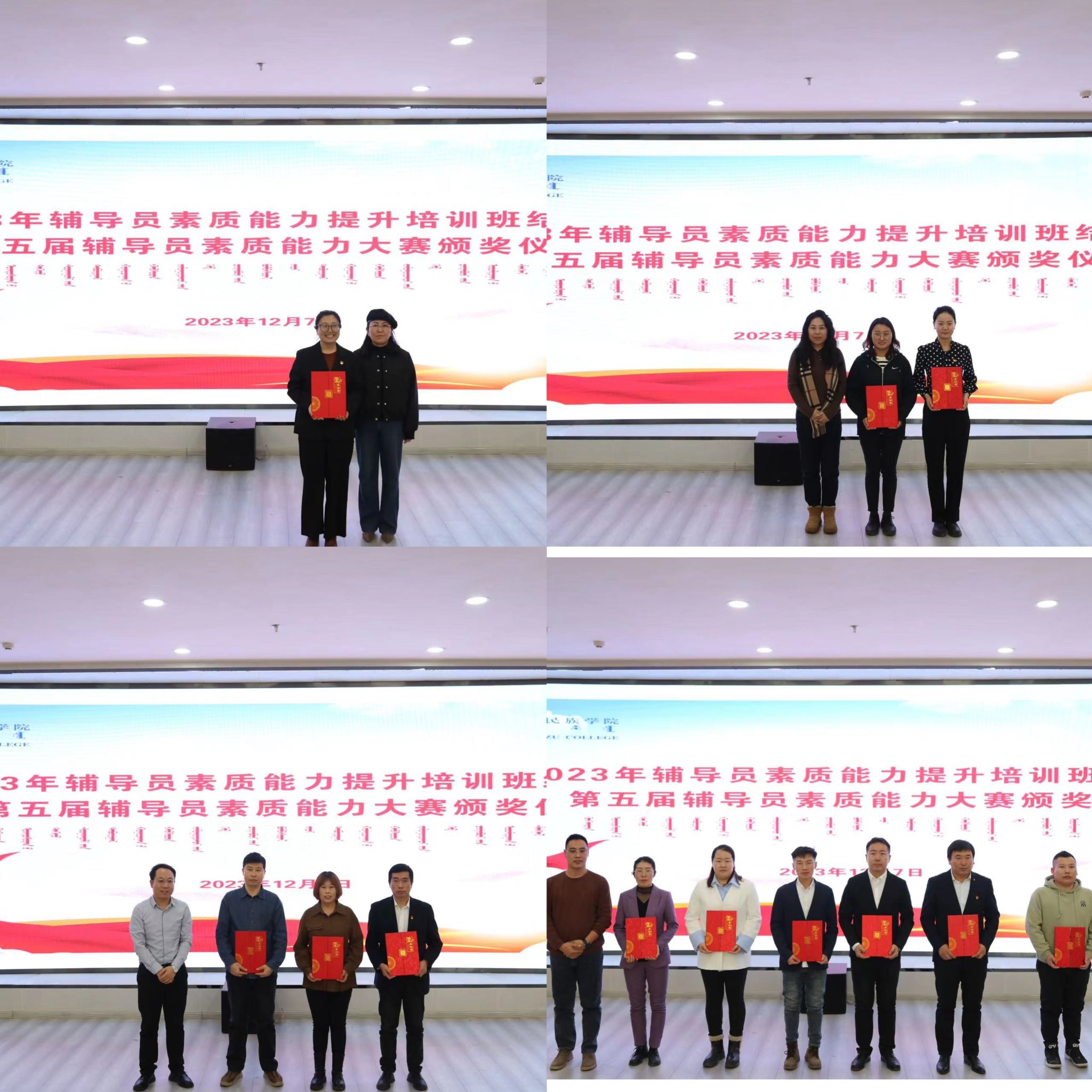 素质能力大赛邀请到内蒙古科技职业学院学工处处长何海春、内蒙古艺术学院新媒体学院党总支书记常春燕、内蒙古财经大学学工部副部长包文明,best365工会主席杨福梅和学工部部长海霞担任评委。大赛设置了基础知识测试、案例分析、谈心谈话情景再现三个环节,充分考察了辅导员们的理论知识水平、解决问题的能力和教育引导能力。经过各位辅导员精彩的表现和评委打分,文学院刘晓获一等奖,音乐学院赛娜、民族学学院金玲获二等奖,外国语学院雷旭平、公共管理学院宝连、经济管理学院华国庆获三等奖,学前教育学院张璟华、法学院姜鹏、数学科学学院刘爱春、学前教育学院斯日古冷、计算机科学学院包巴雅力格、基础教育学院常志君获优秀奖。