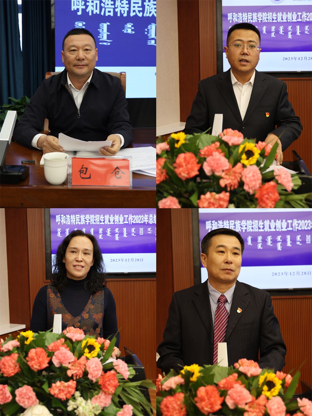 招生就业处处长包仓通报了2023届毕业生毕业去向落实率和各学院毕业生去向落实情况。蒙古学学院、学前教育学院、民族学院分别作了就业工作交流发言。