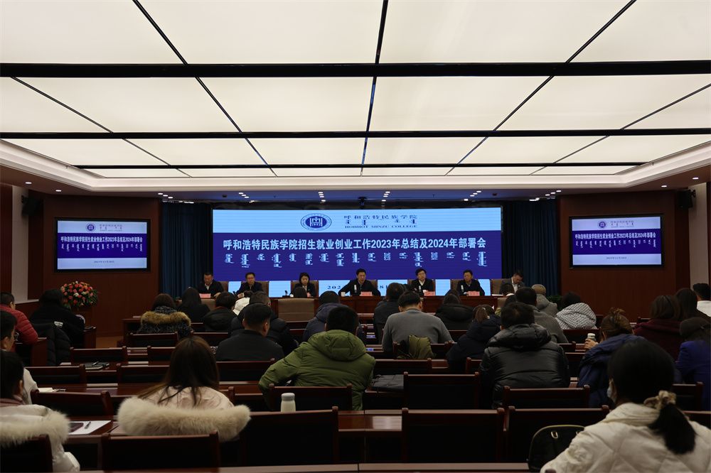 额尔敦布和总结了2023年招生就业创业工作开展情况,分析研判了当前就业形势及学校招生就业创业工作中存在的问题,并对2024年工作进行安排部署,一是各部门、学院要按照“立足早、工作实、谋划全、盯的紧”的要求,认真贯彻落实2024届毕业生就业创业工作;二是要全面发挥政策性岗位吸纳就业作用,构建高质量就业服务体系,强化困难群体帮扶,提高人才培养质量;三是要加强就业监测和评价反馈,强化组织领导,全力推动学校2024届毕业生高质量充分就业。