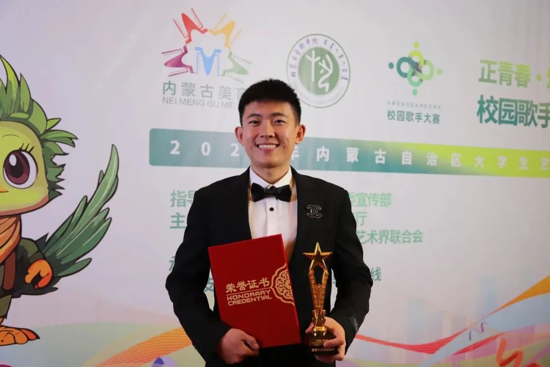 近日,由内蒙古自治区党委宣传部指导,内蒙古自治区教育厅、内蒙古自治区文学艺术界联合会联合主办的2023年全区大学生艺术节“正青春·颂中华”校园歌手大赛在内蒙古艺术学院举办。best365杨雨浩同学荣获全区校园歌手大赛业余组“高校十大校园歌手”。